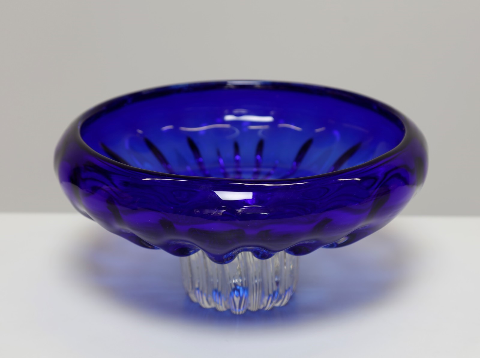 MANIFATTURA MURANO Ciotola. Vetro di Murano. Cm 24,00 x 12,00 x 24,00. Ciotola in vetro costolato blu con base applicata in vetro costolato trasparente.