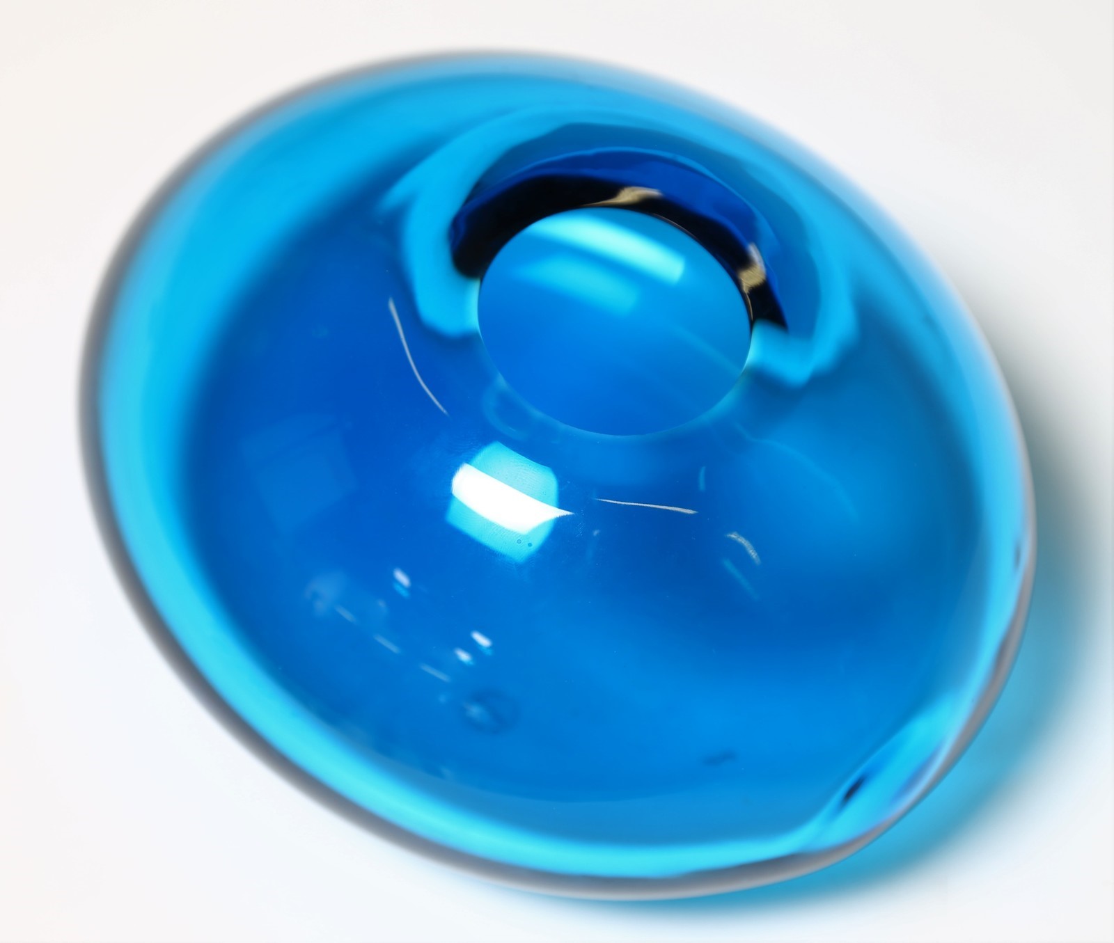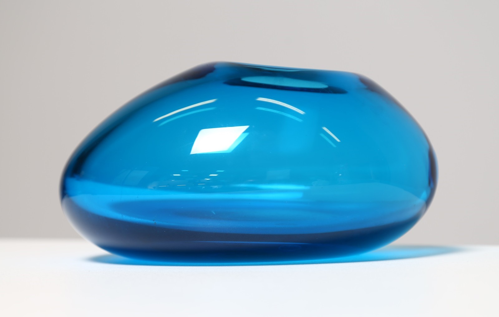 SALVIATI VETRERIA Vaso. Vetro di Murano. Cm 23,00 x 11,50 x 18,00. Vetro azzurro di Murano, anni 70