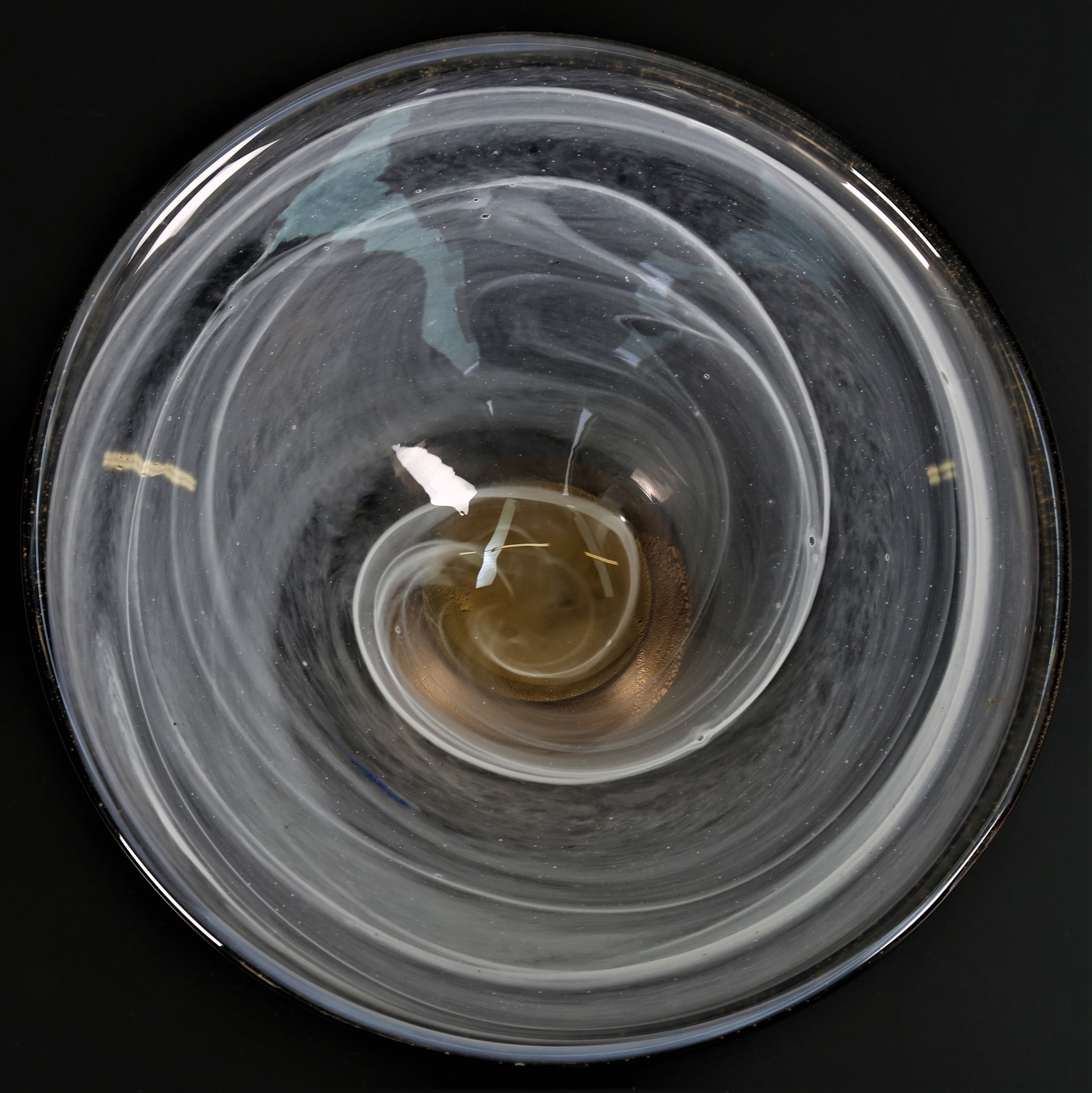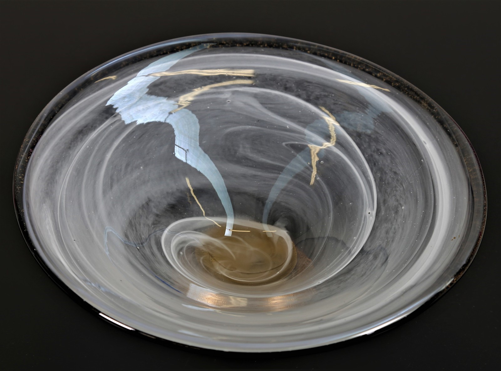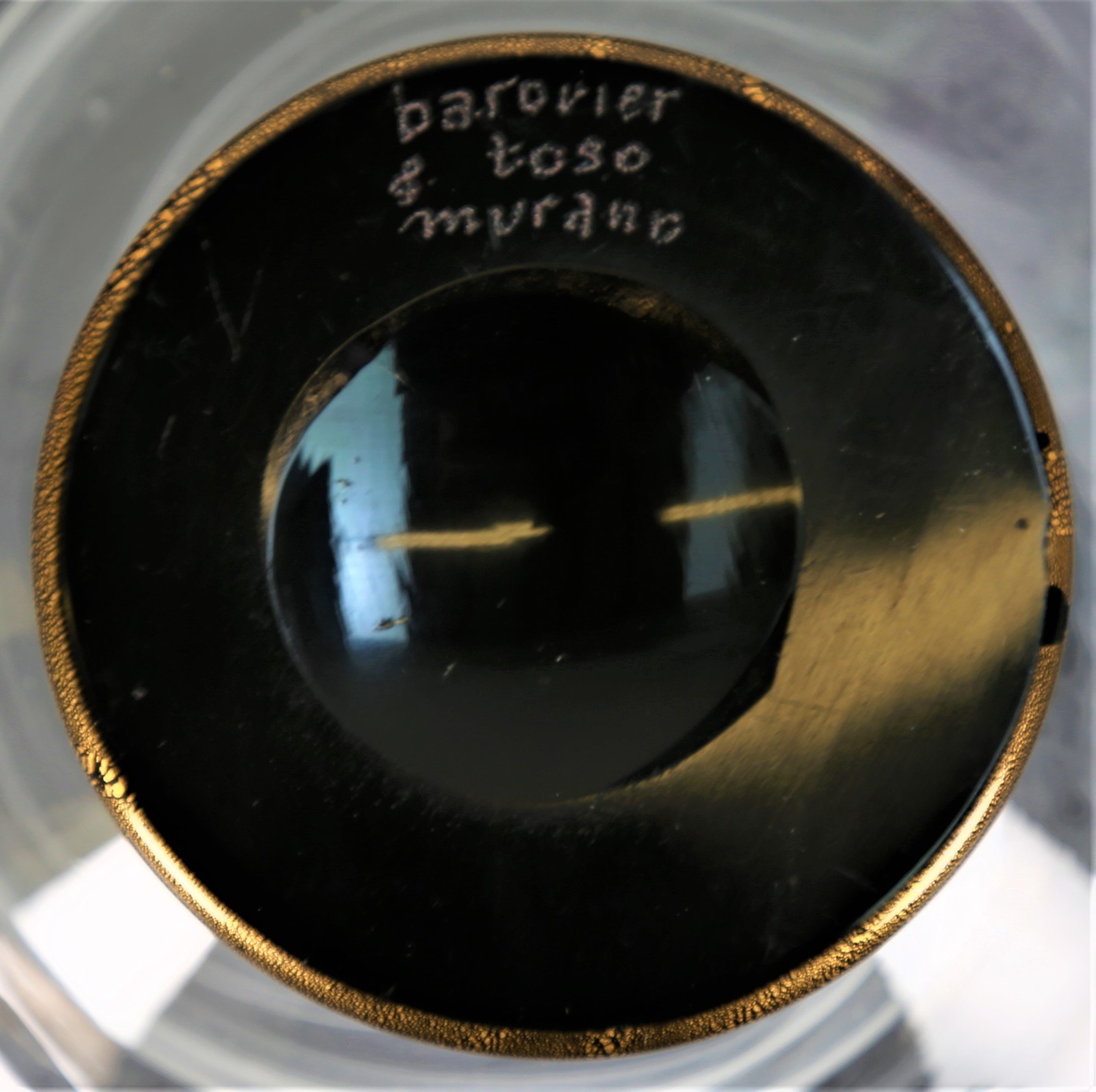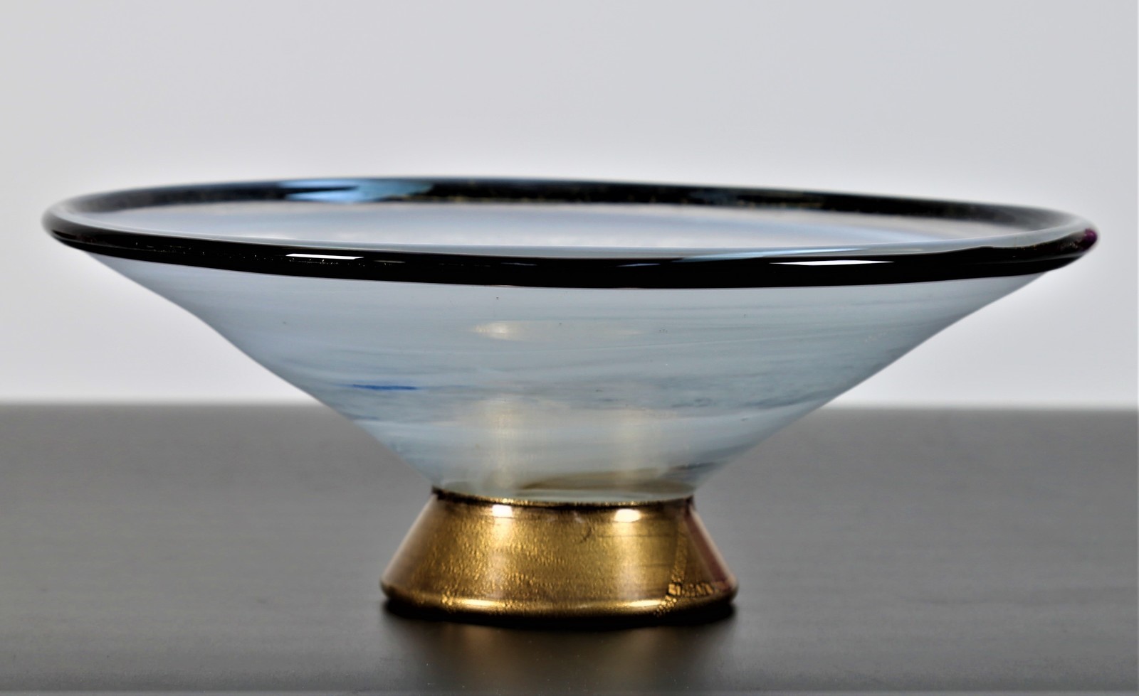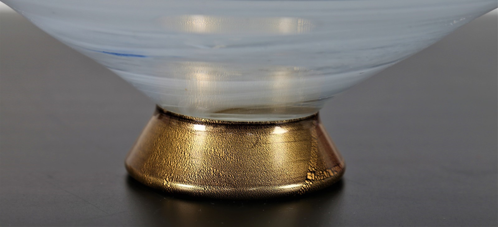 BAROVIER & TOSO Centerpiece. Murano glass. Cm 25,50 x 9,50. Centrepiece in clear glass, base in gold leaf and edging in black, 1970s. Signed on the bottom