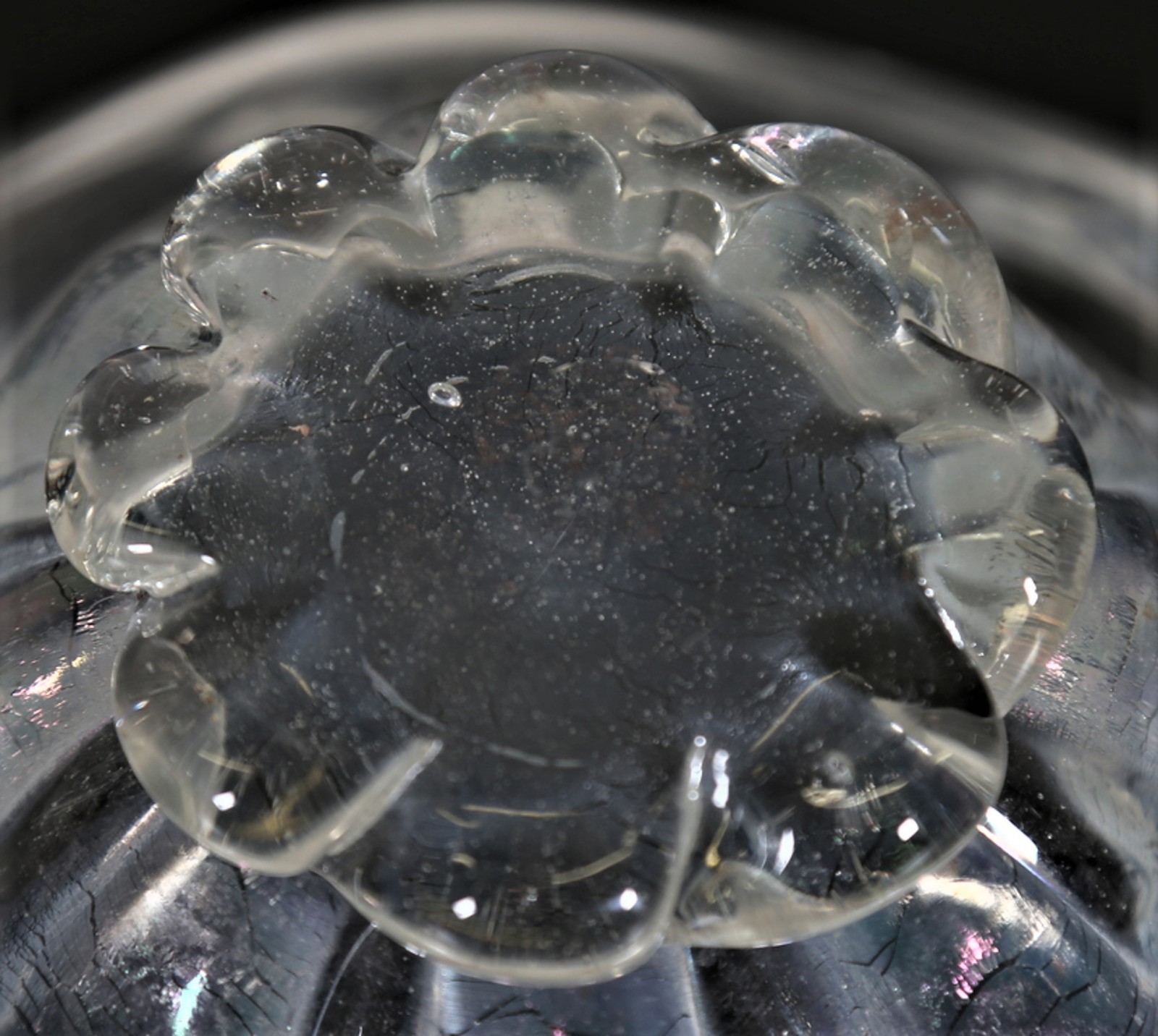 BAROVIER & TOSO Centrotavola. Vetro di Murano. Cm 23,00 x 10,50. Centrotavola in vetro iridescente, anni 50