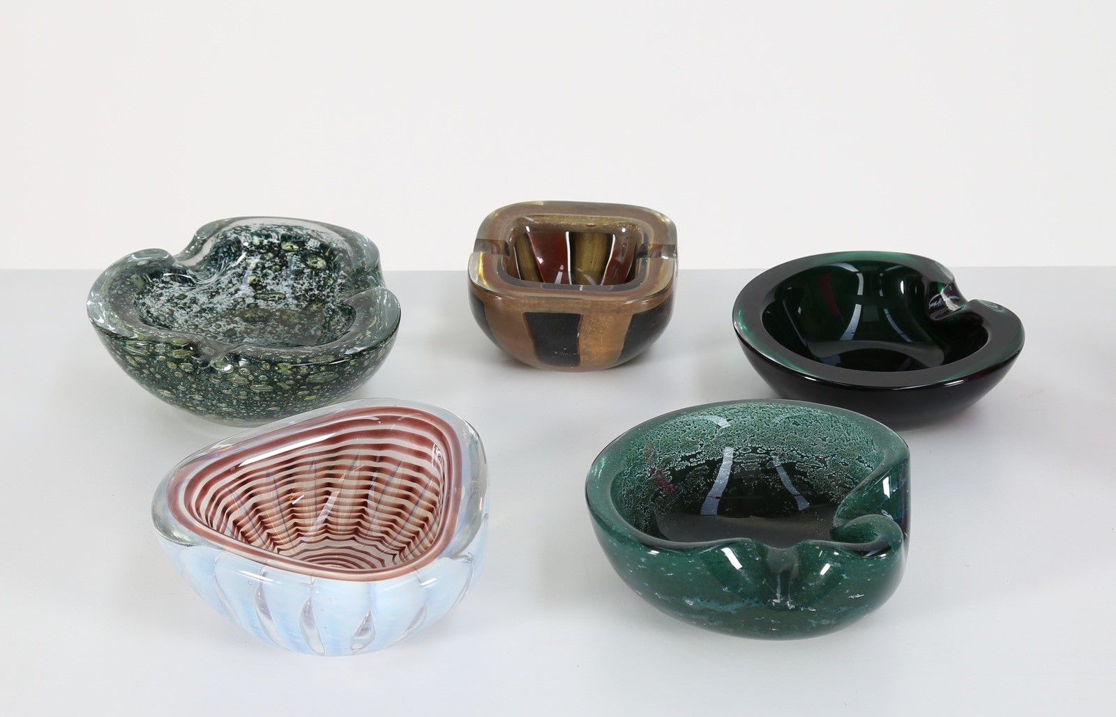 Lot 568 | BAROVIER & TOSO Cinque posacenere. Vetro di Murano. Cm 15,00 x 6,00 x 15,00....