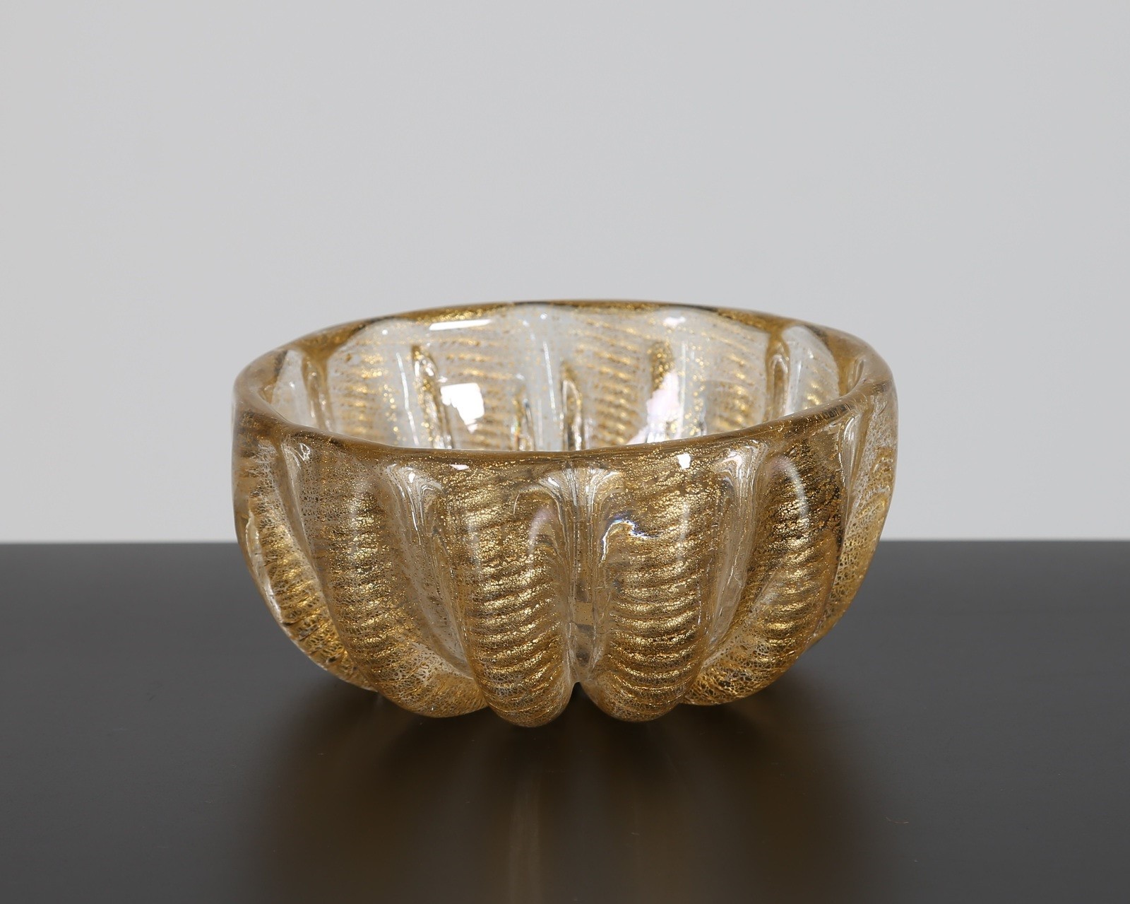 BAROVIER ERCOLE (1889 - 1974) Bowl . Murano glass. Cm 15,00 x 7,00. Barovier & Toso "Cordonato d'oro" glass bowl with gold leaf, 1950s