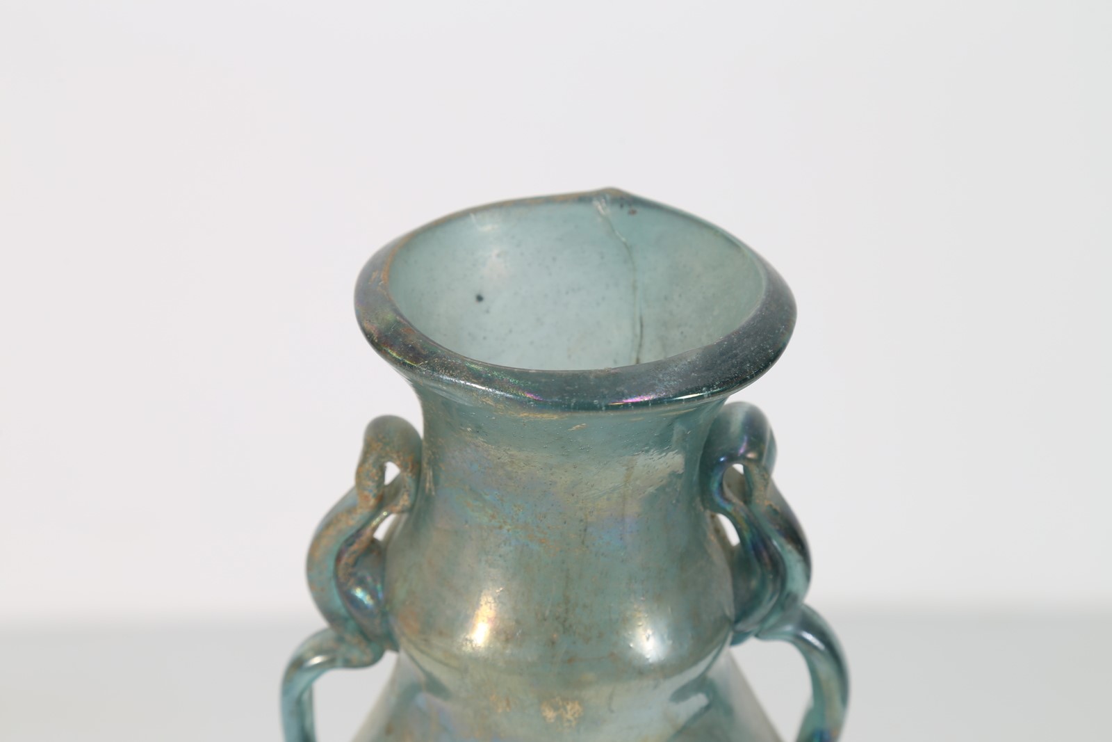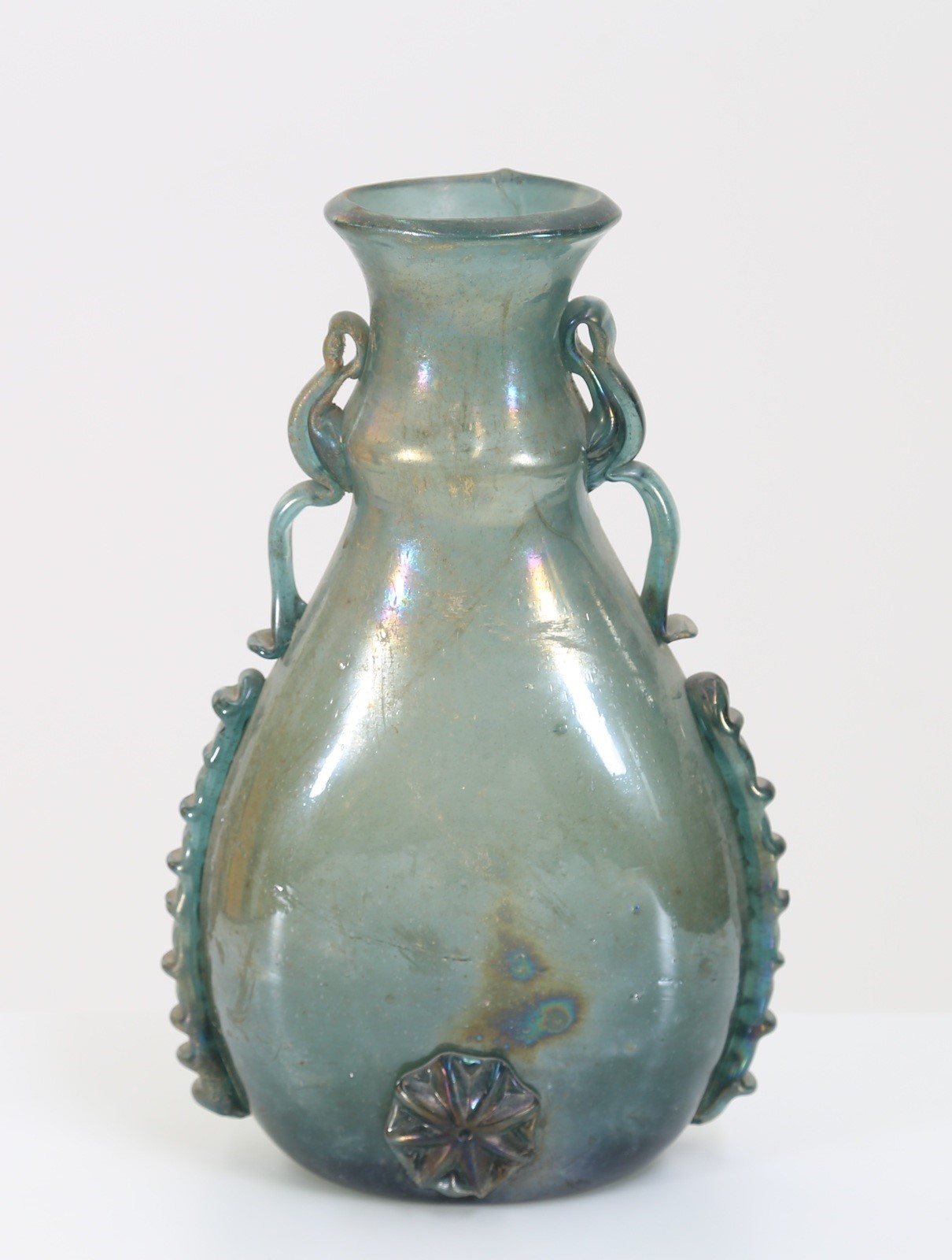 MANIFATTURA MURANO Vase. Murano glass. Cm 21,50 x 34,50. Glass vase, excavation with handles and morises, 50s.