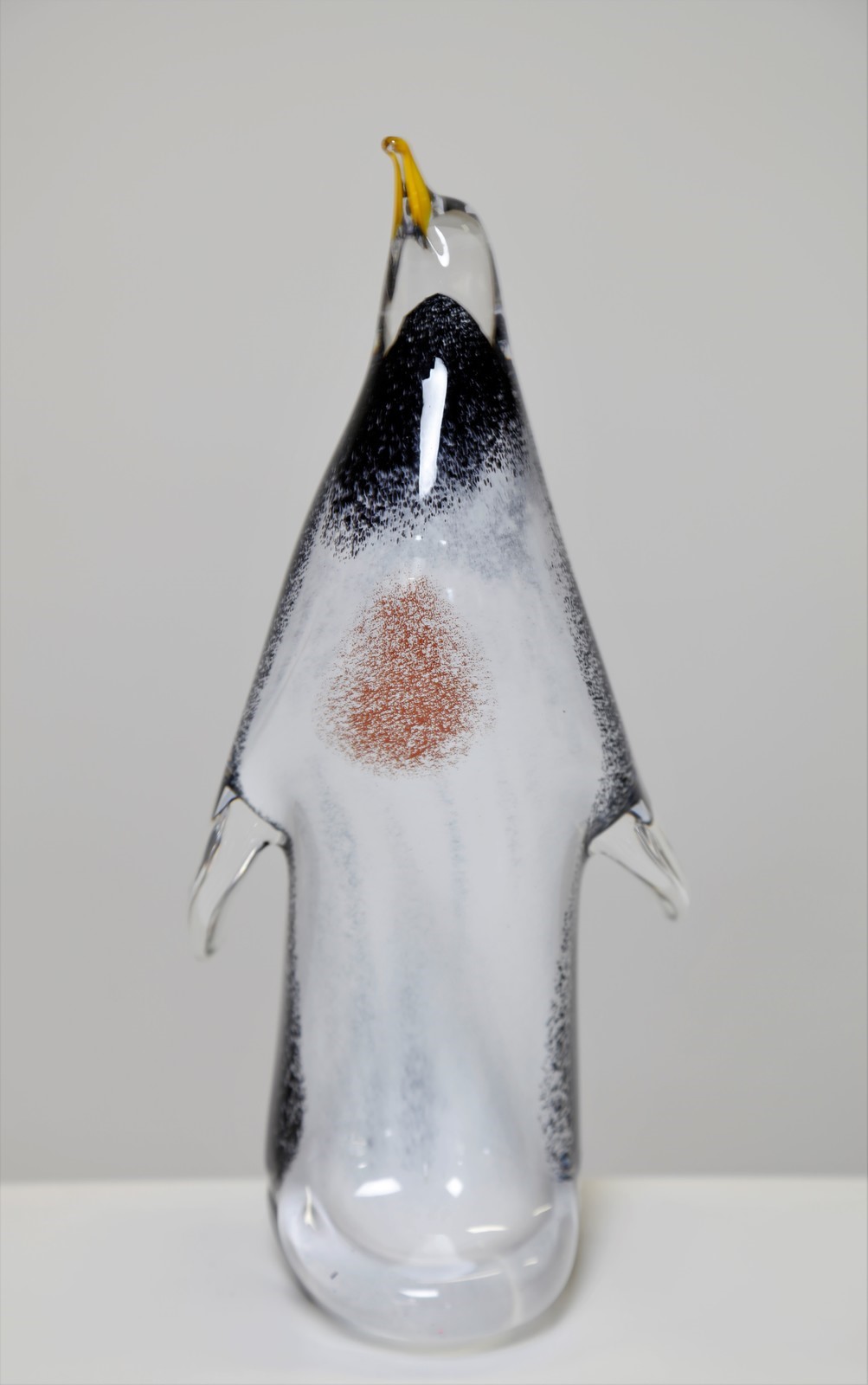 MARCOLIN ART CRYSTAL Pinguino. Vetro massello. Cm 14,00 x 30,00 x 13,50. Marchio e firma presenti sotto la base.