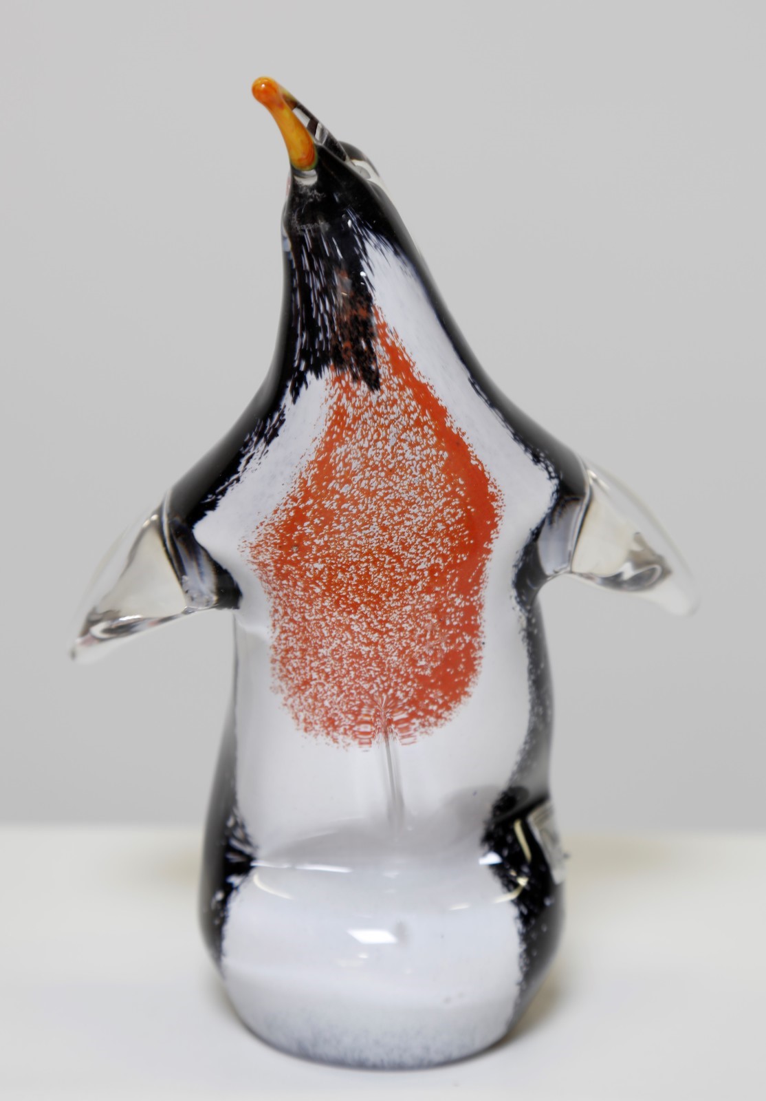 MARCOLIN ART CRYSTAL Pair of penguins. Solid glass. Cm 20,00 x 9,00 x 11,00. Large penguin measures: 26 cm x 14 cm x 14 cm Signature present on both.