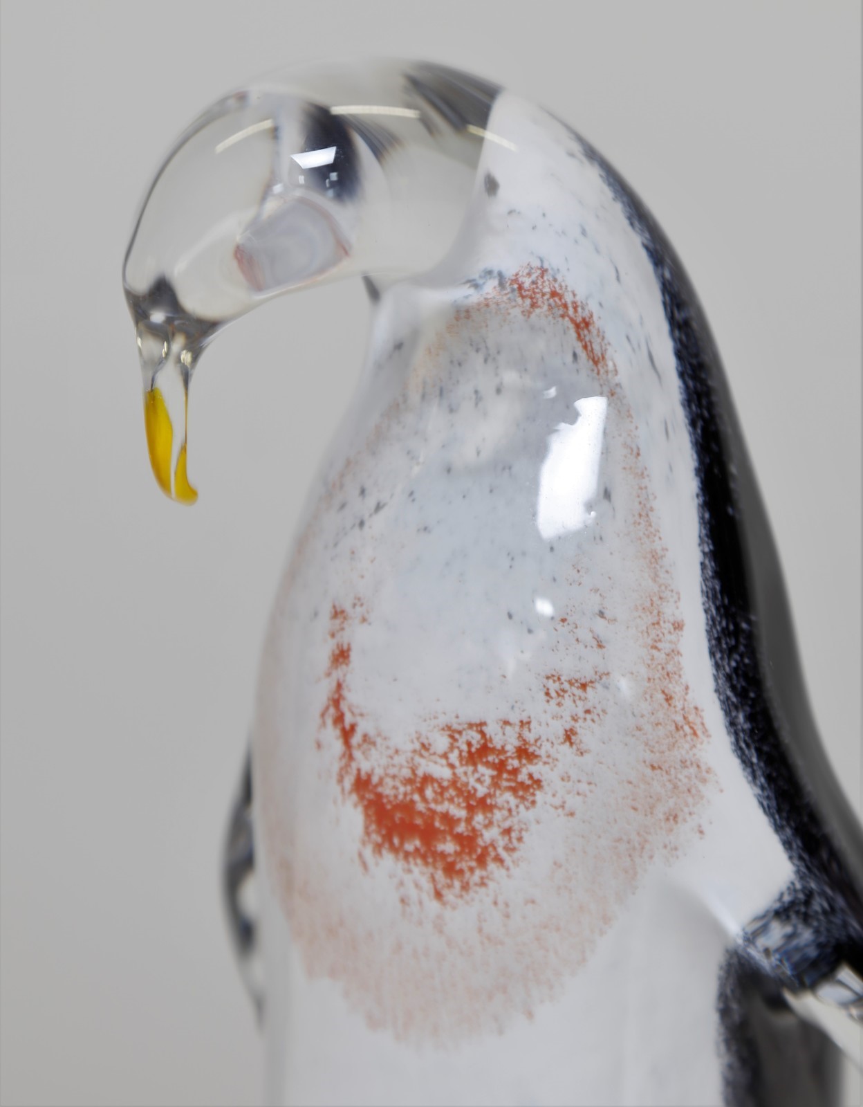 MARCOLIN ART CRYSTAL Coppia di pinguini. Vetro massello. Cm 20,00 x 9,00 x 11,00. Misure pinguino grande: 26 cm x 14 cm x 14 cm Firma presente su entrambi.