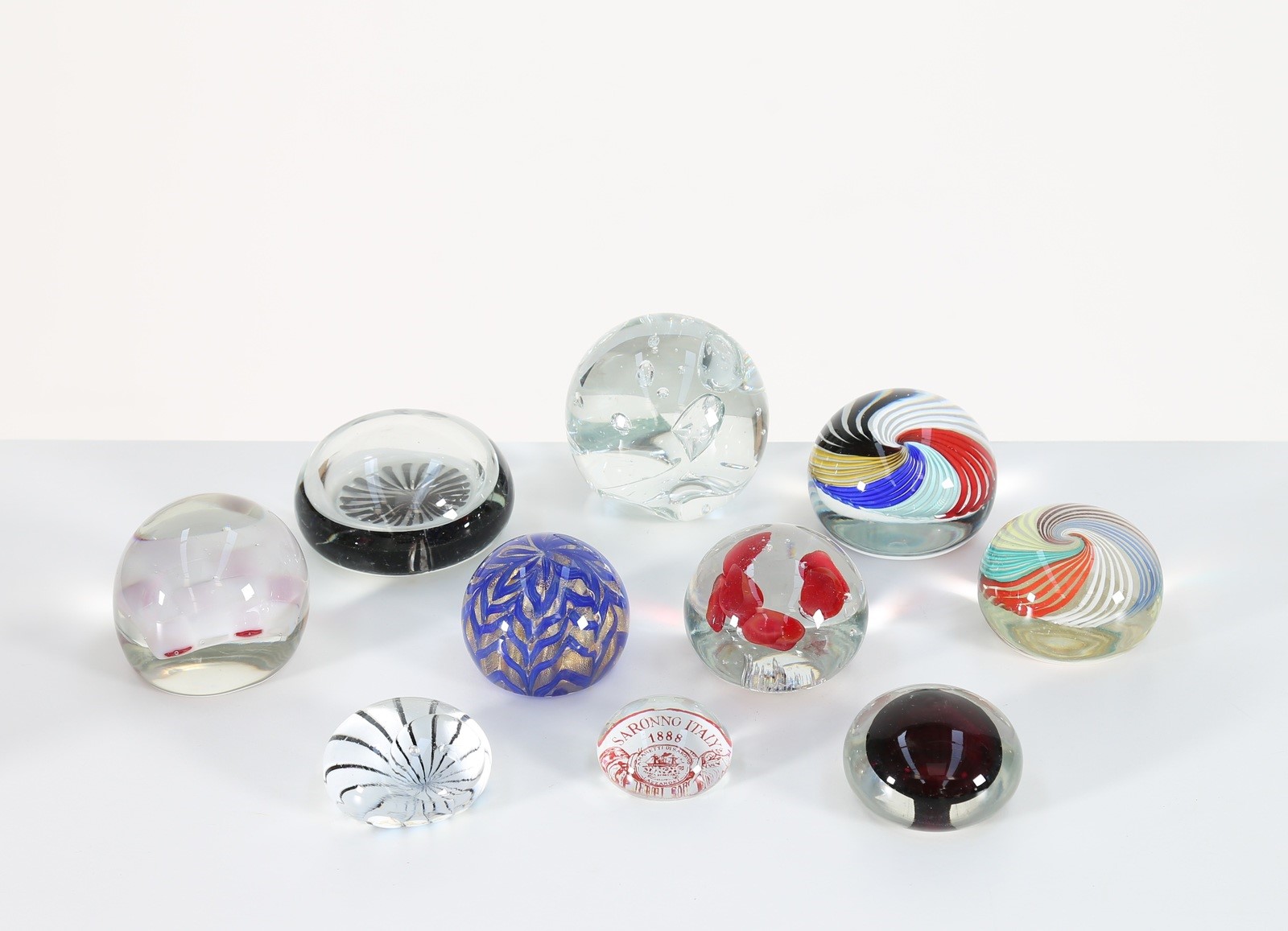 BAROVIER & TOSO Ten paperweights. Murano glass. Cm 10,00 x 10,00 x 10,00. Size: 6 x 10.5 x 10.5 cm - 7 x 9 x 9 cm - 8 x 8.5 x 8.5 cm - 6 x 7.5 x 7.5 cm - 4 x 7.5 x 7, 5 cm - 3.5 x 7 x 7 cm - 3 x 5.5 x 5.5 cm - two pieces 6 x 8 x 8 cm
