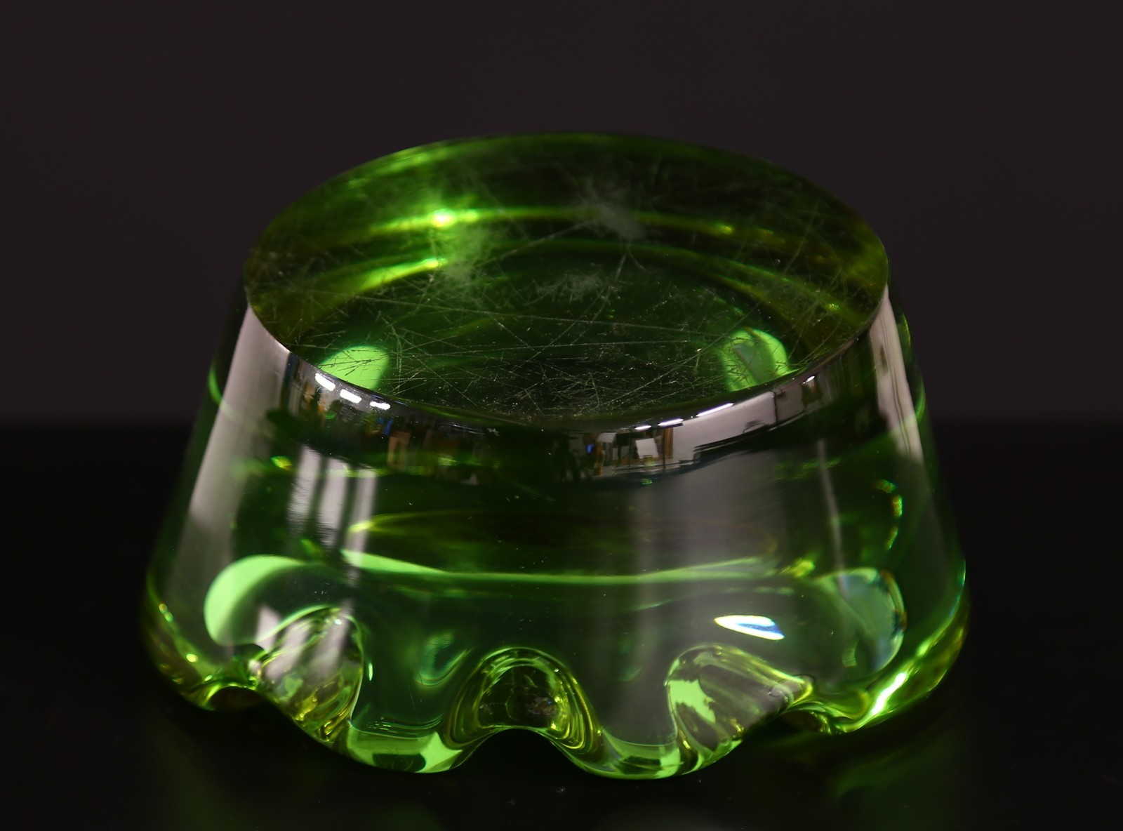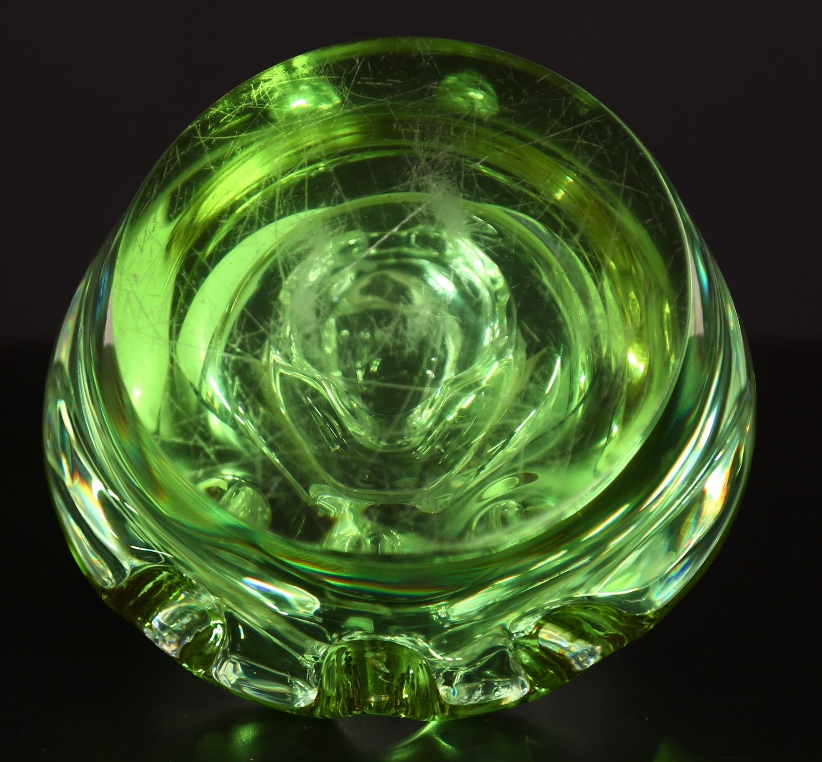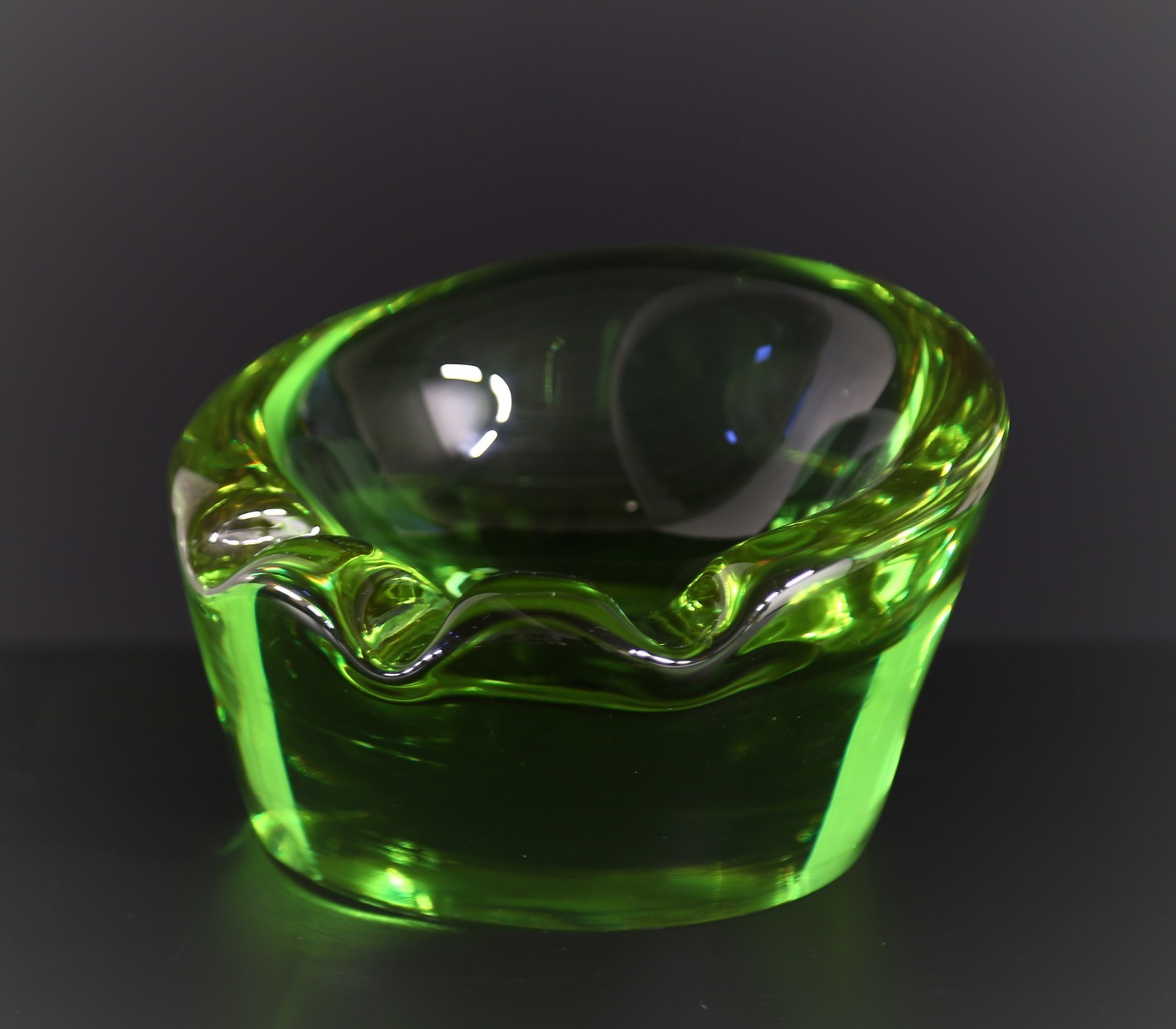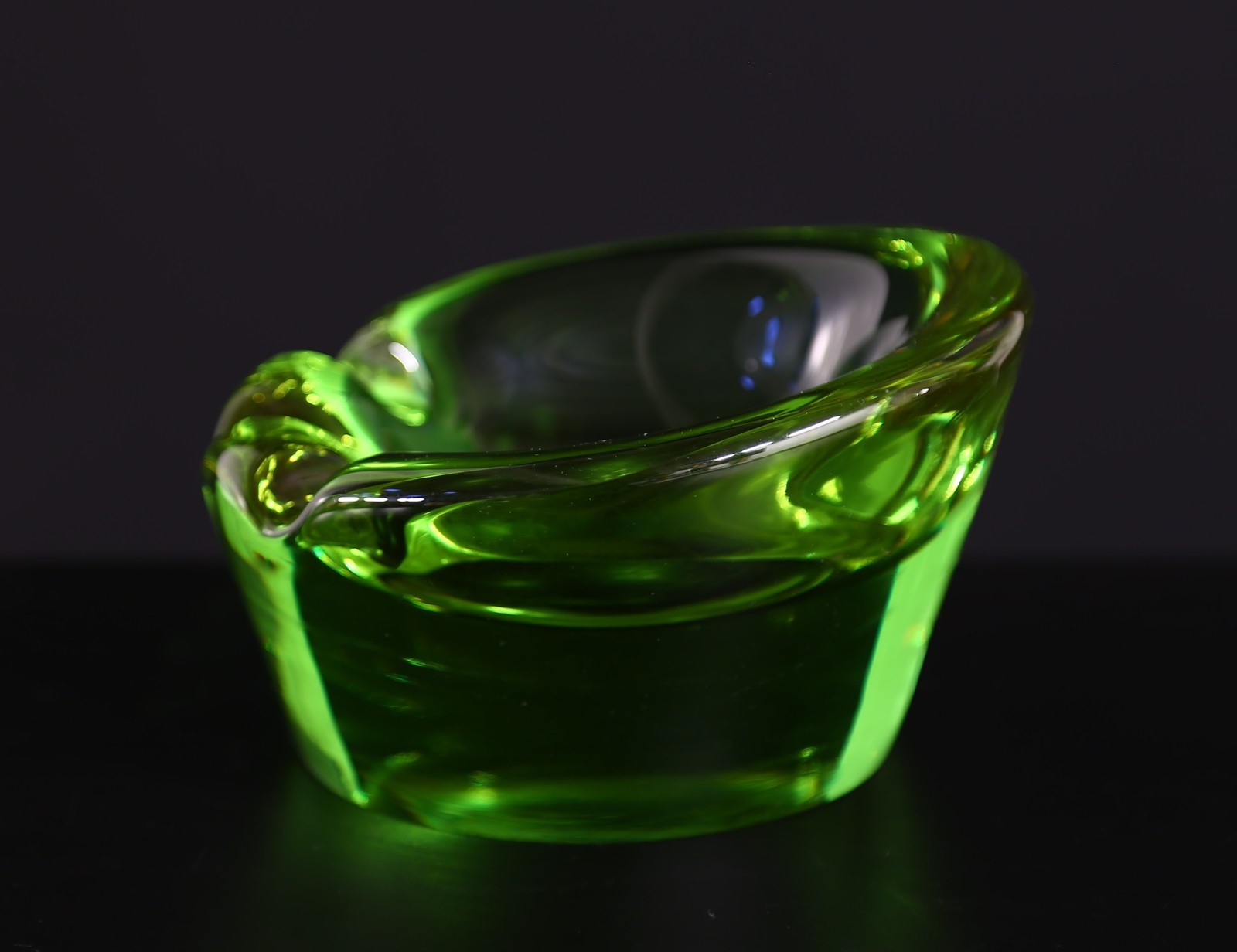 POLI FLAVIO Ashtray. Murano glass. Cm 15,00 x 9,00 x 15,50. Ashtray in green crystal water for Seguso art glass, 50s.