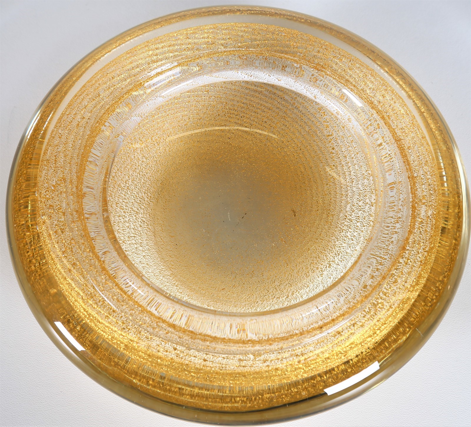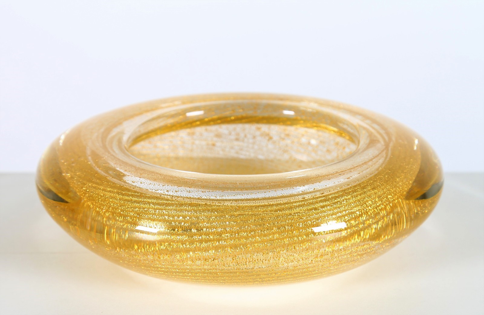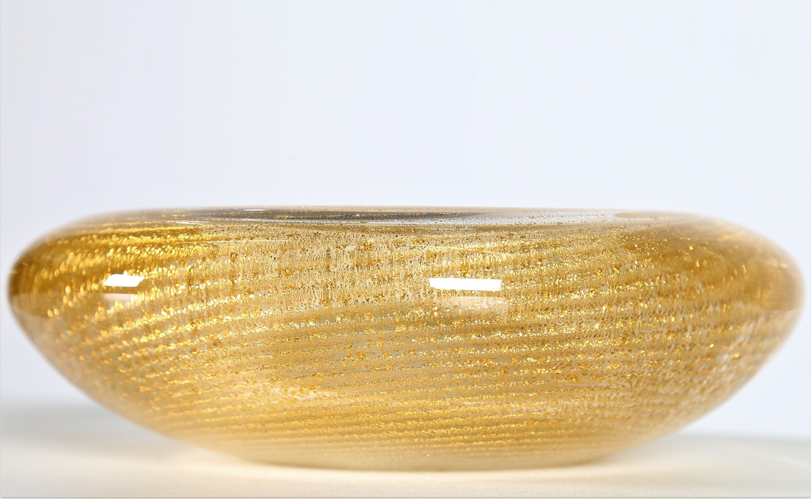 VETRERIE SEGUSO Bowl. Solid glass. Cm 22,00 x 7,00 x 22,00. Bowl in solid glass and gold leaf