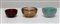 SCARPA CARLO (1906 - 1978) Three bowls. Murano glass. . Murano glass, for Venini. Amber bowl size: H 5.5 L 9.5 P 9.5 Green bowl size: H 5.5 L 7.5 P 7.5 Red bowl size: H 4.5 L 7.5 P 7.5