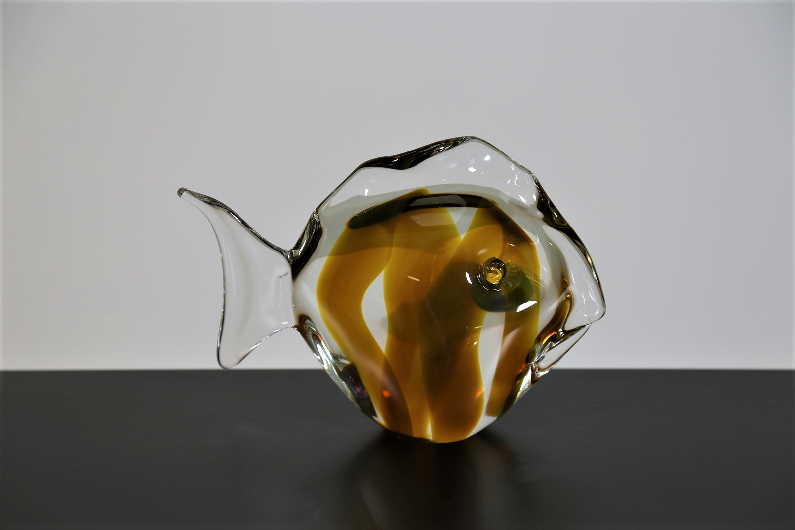 MANIFATTURA MURANO Pesce. Vetro sommerso. Cm 27,00 x 20,00. Pesce in vetro sommerso color ambra, anni 70°