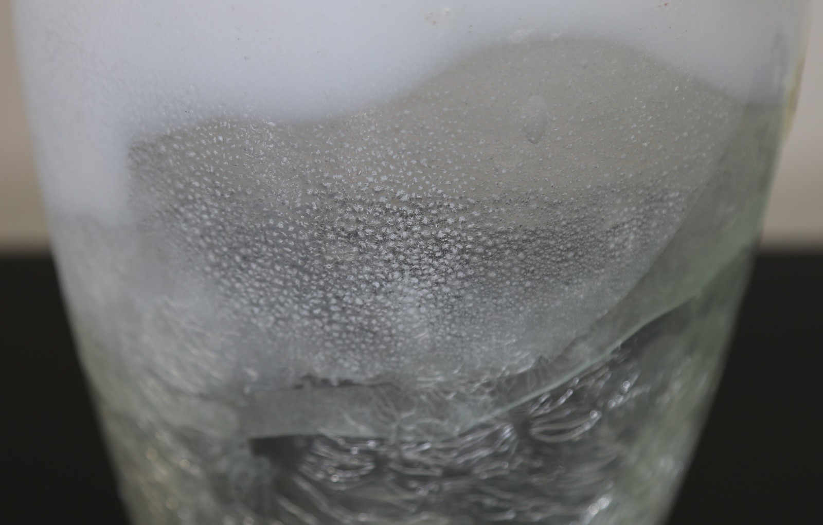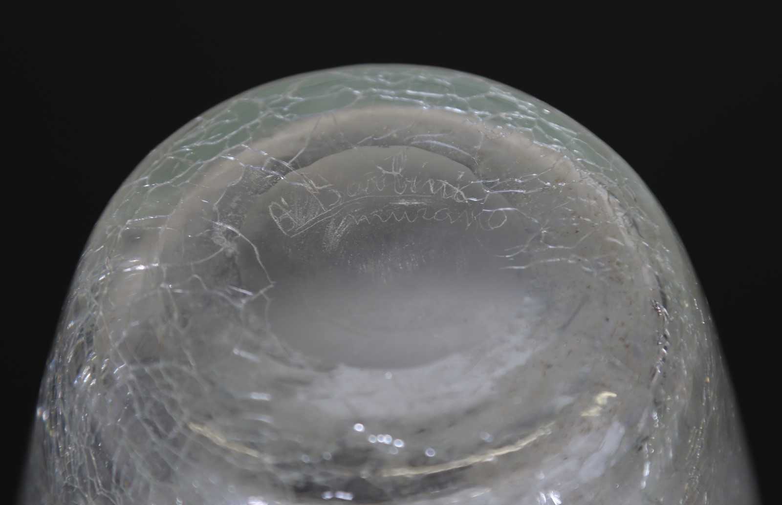 BARBINI ALFREDO (1912 - 2007) Vaso . Vetro di Murano. Cm 16,00 x 28,50 x 16,00. Vetro scavo ghiacciato e acidato, per Fratelli Barbini anni 70. Firma presente