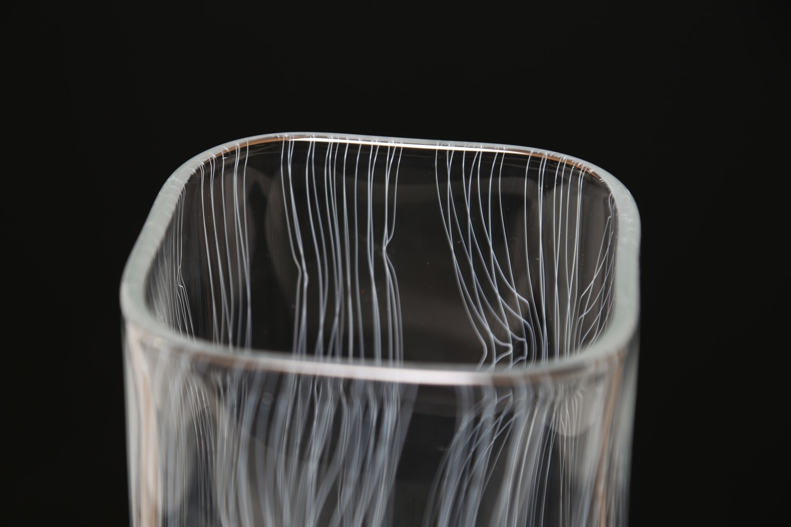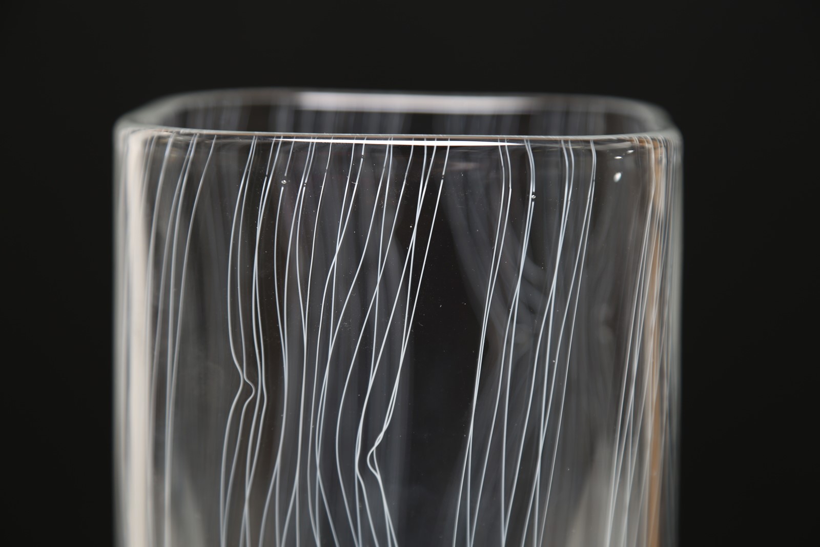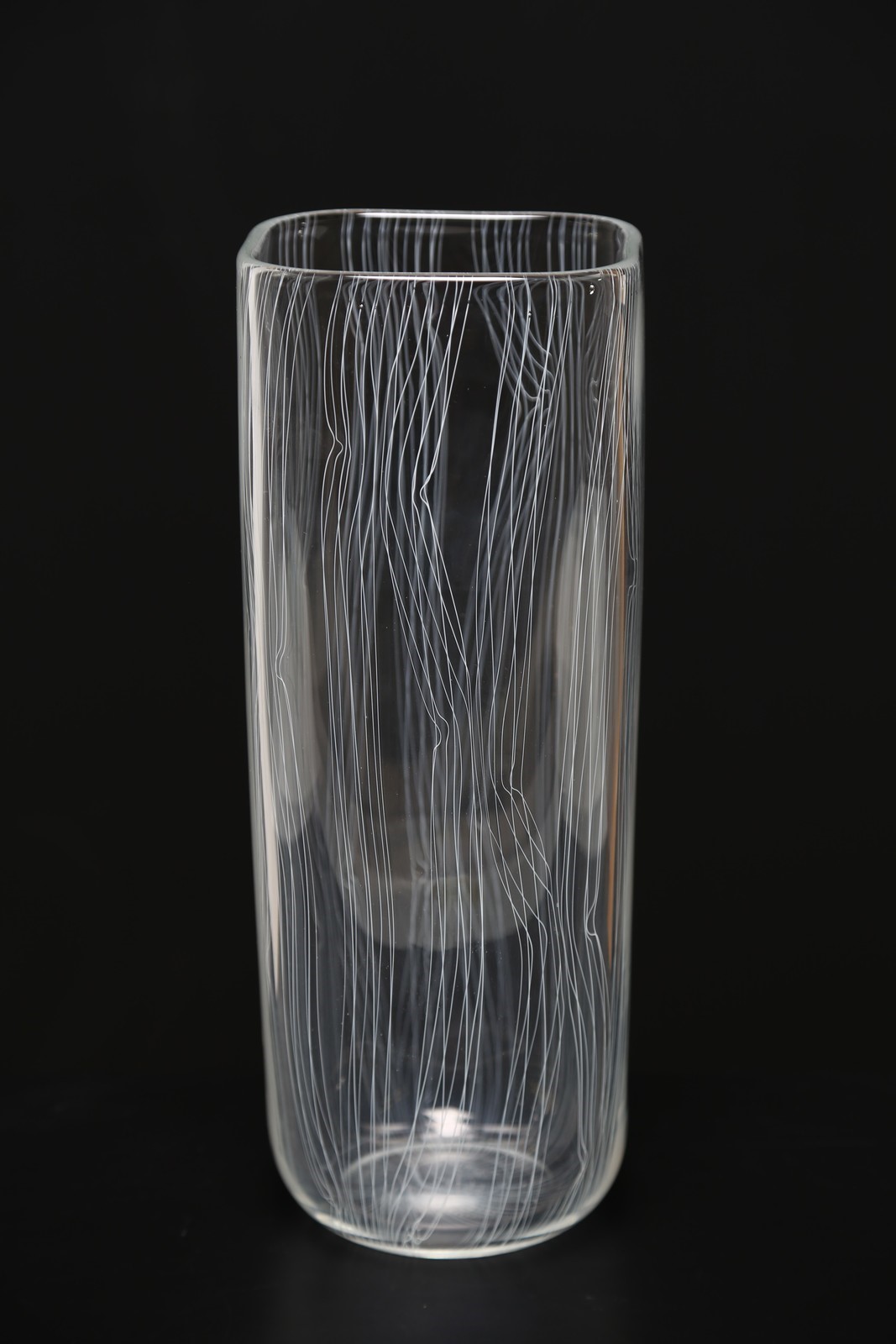 SEGUSO GIAMPAOLO (n. 1942) Vaso. Vetro di Murano. Cm 13,50 x 34,50 x 13,50. Vaso betulle in vetro di Murano in cristallo e filamenti bianchi, 1999. Tiratura 37/99.