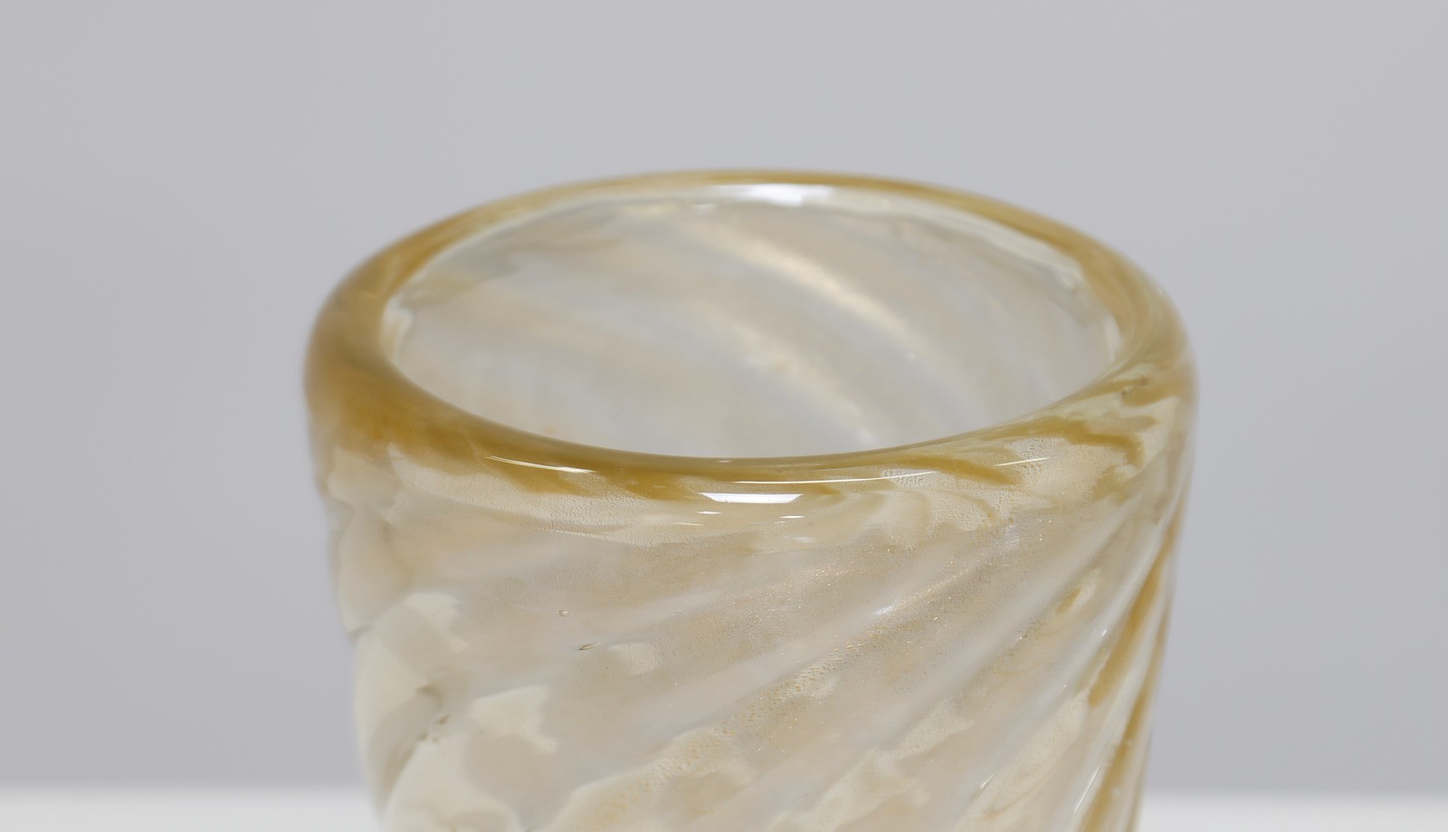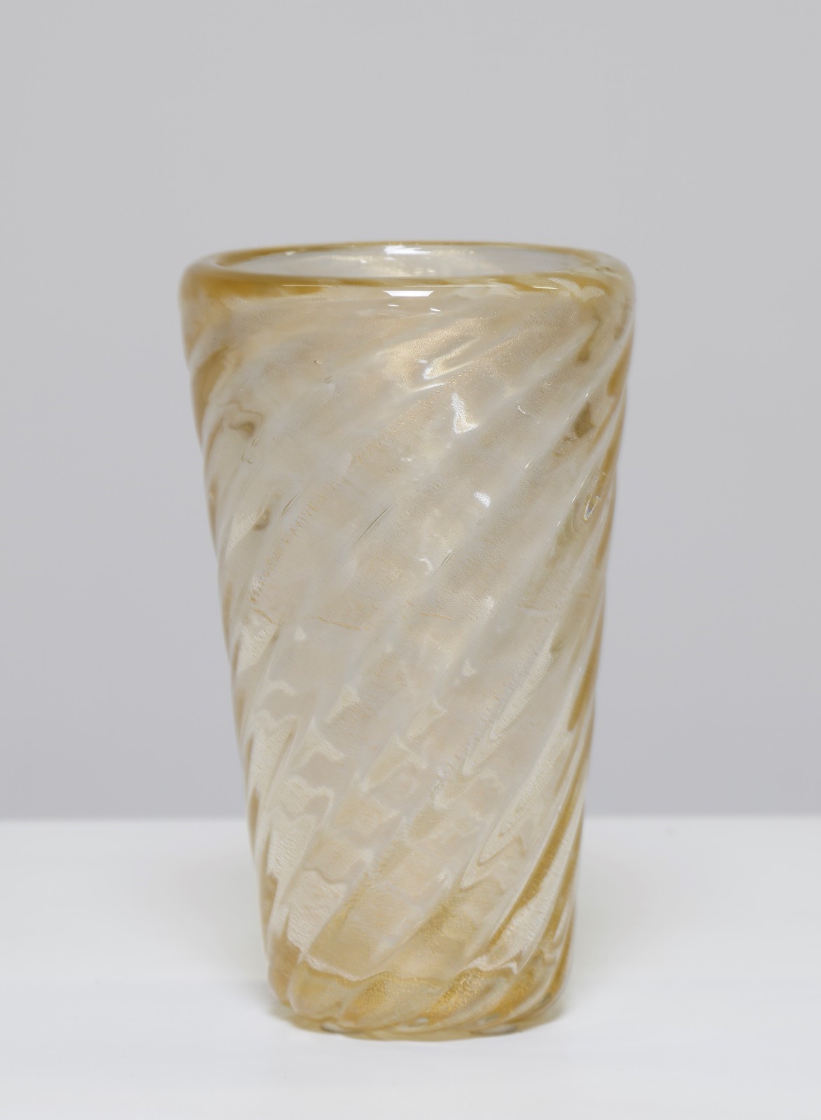 SEGUSO VETRI D'ARTE Vase. Murano glass. Cm 15,00 x 25,00. Glass vase with twisted ribs with inclusion of gold dust, 1940. Publications: Seguso art glasses, curated by Marc Heisemans p. 108.