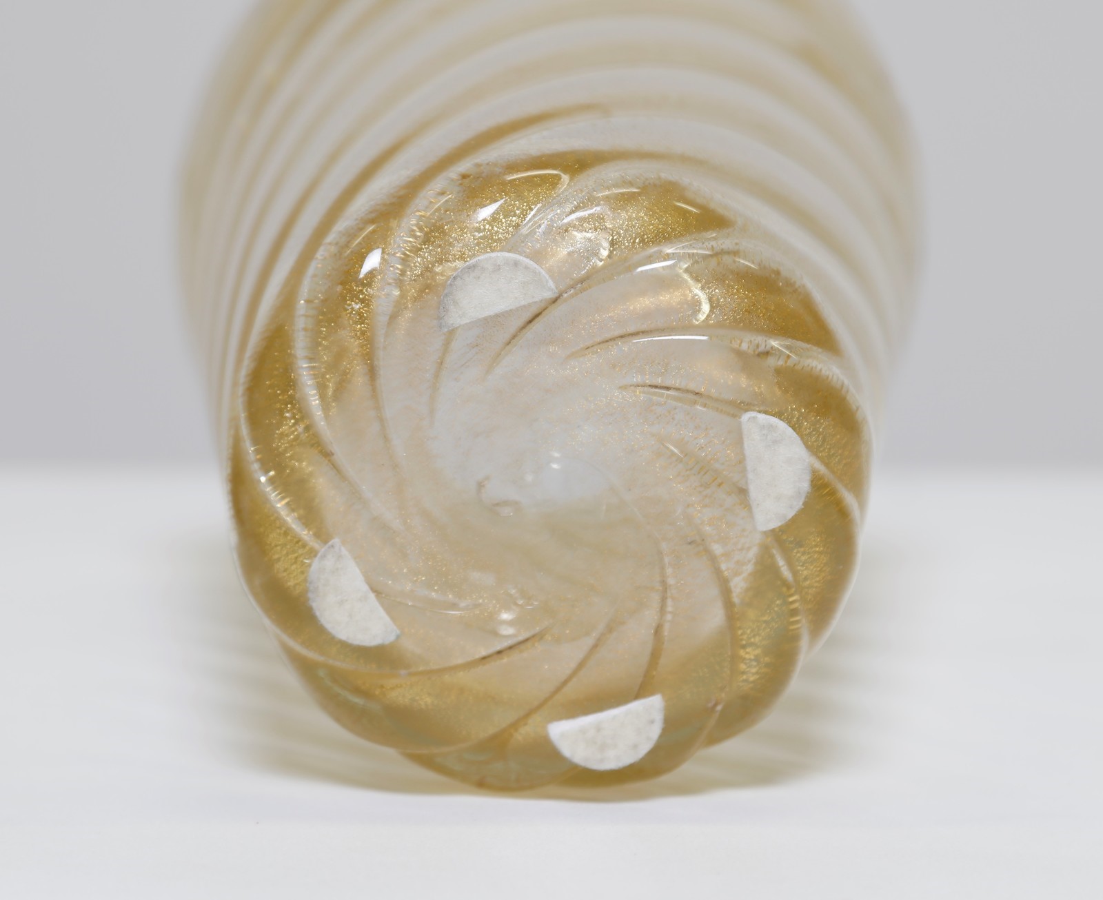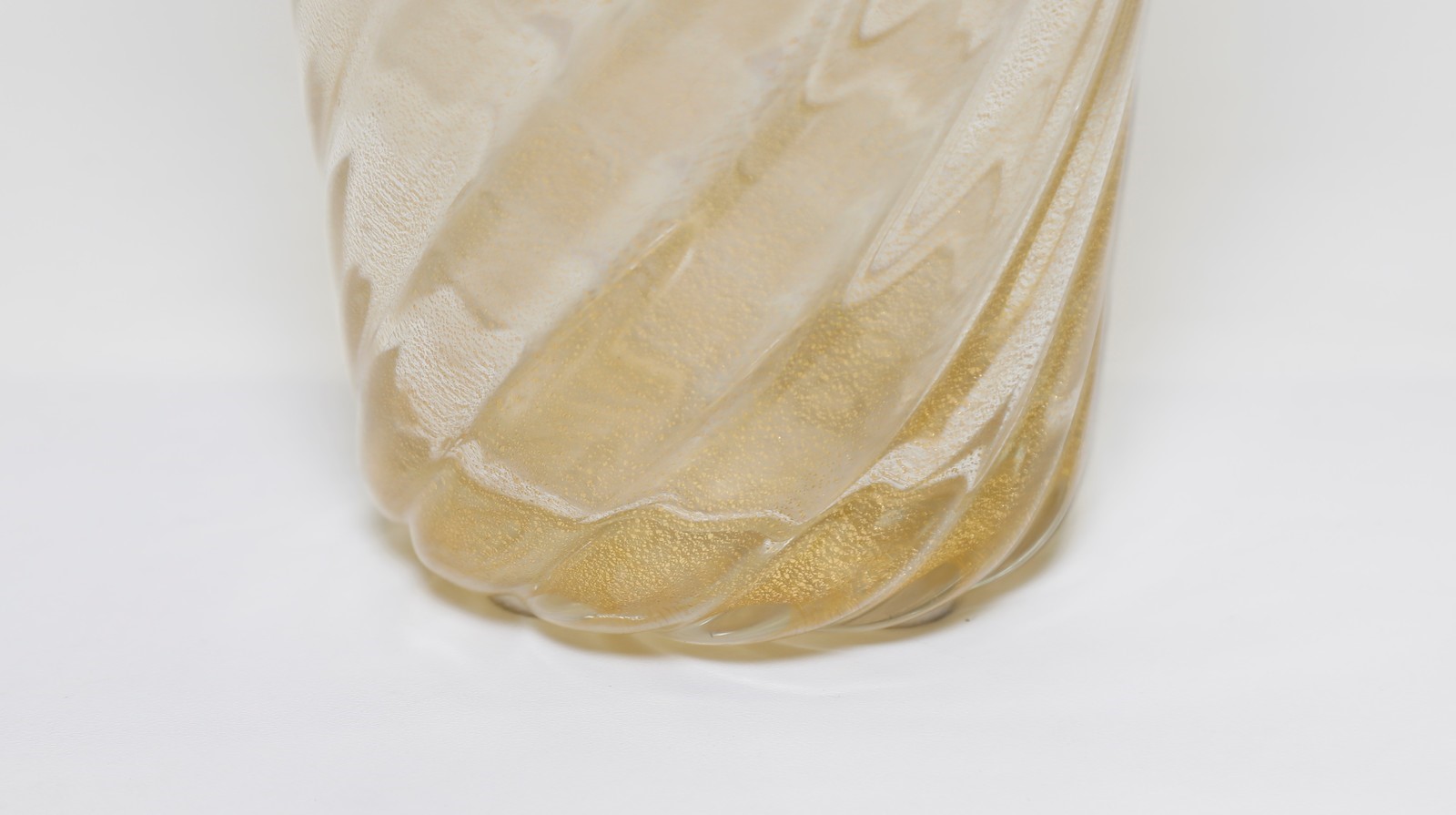 SEGUSO VETRI D'ARTE Vaso. Vetro di Murano. Cm 15,00 x 25,00. Vaso in vetro a costolature ritorte con inclusione di polvere d'oro, 1940.. Pubblicazioni: Seguso vetri d'arte, a cura di Marc Heisemans p. 108.