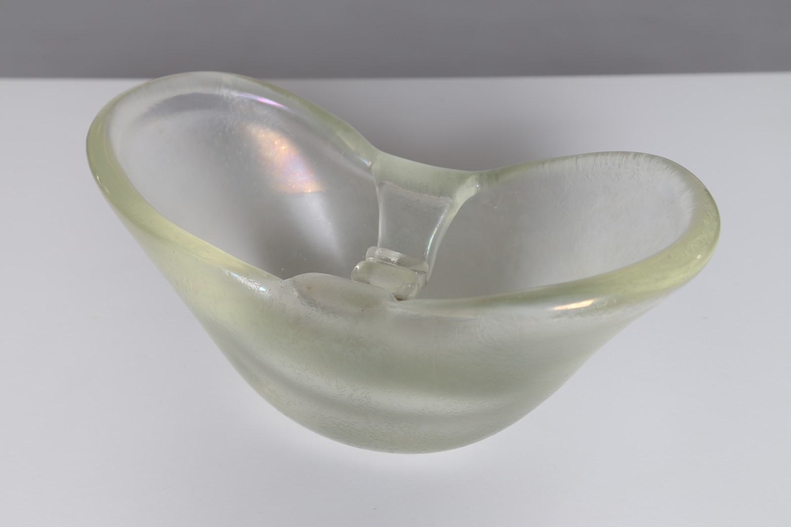 POLI FLAVIO (1900 - 1984) Centerpiece. Murano glass. Cm 14,50 x 15,50 x 29,50. Centerpiece in strongly iridescent transparent glass for Seguso Vetri D’arte. 40s