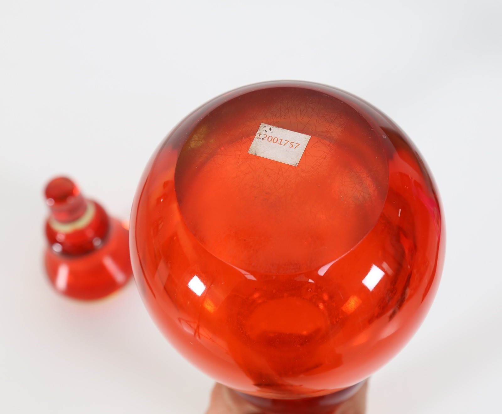 POLI FLAVIO (1900 - 1984) Bottle with stopper. Murano glass. Cm 11,00 x 43,00 x 11,00. Glass bottle with stopper, sommerso technique, model 137734 by Seguso Vetri D'Arte, 1964