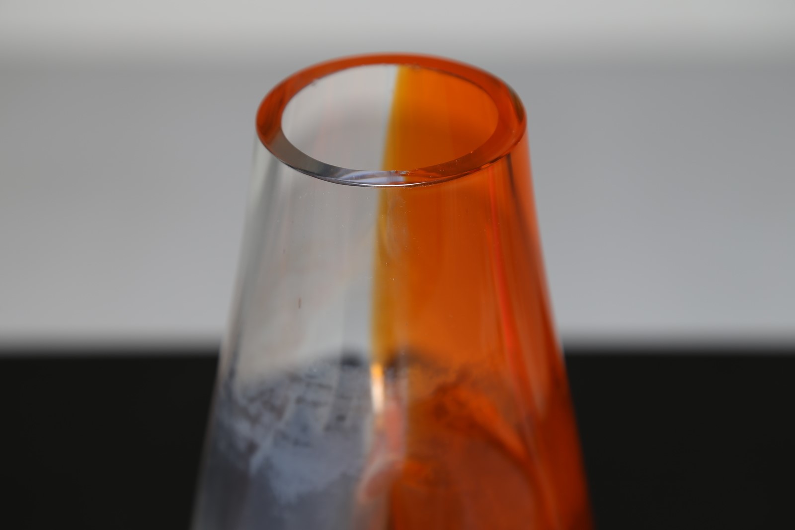 VETRERIA CENEDESE Vaso . Vetro di Murano. Cm 13,50 x 36,00. Vetro soffiato bicolore conico e schiacciato, anni 60