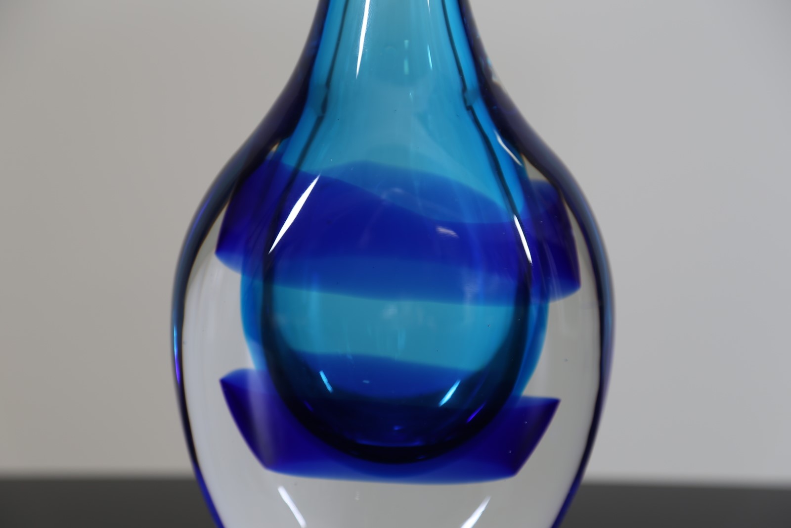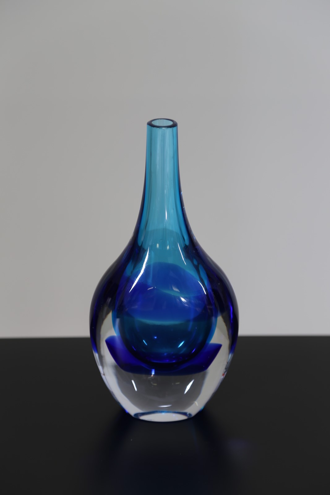 GASPARI LUCIANO Vase. Murano glass. Cm 13,00 x 27,00 x 7,50. Submerged solid glass, for Salviati 60s. Signature at the base
