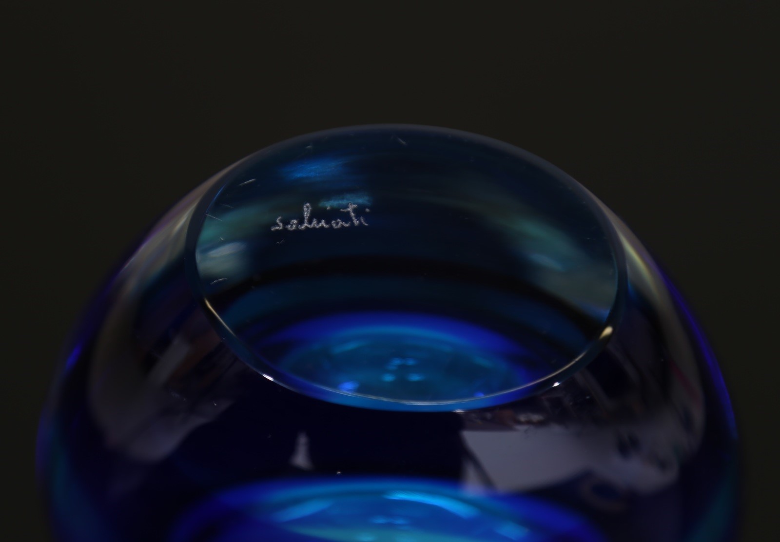 GASPARI LUCIANO Vaso. Vetro di Murano. Cm 13,00 x 27,00 x 7,50. Vetro massello sommerso, per Salviati anni 60. Firma alla base