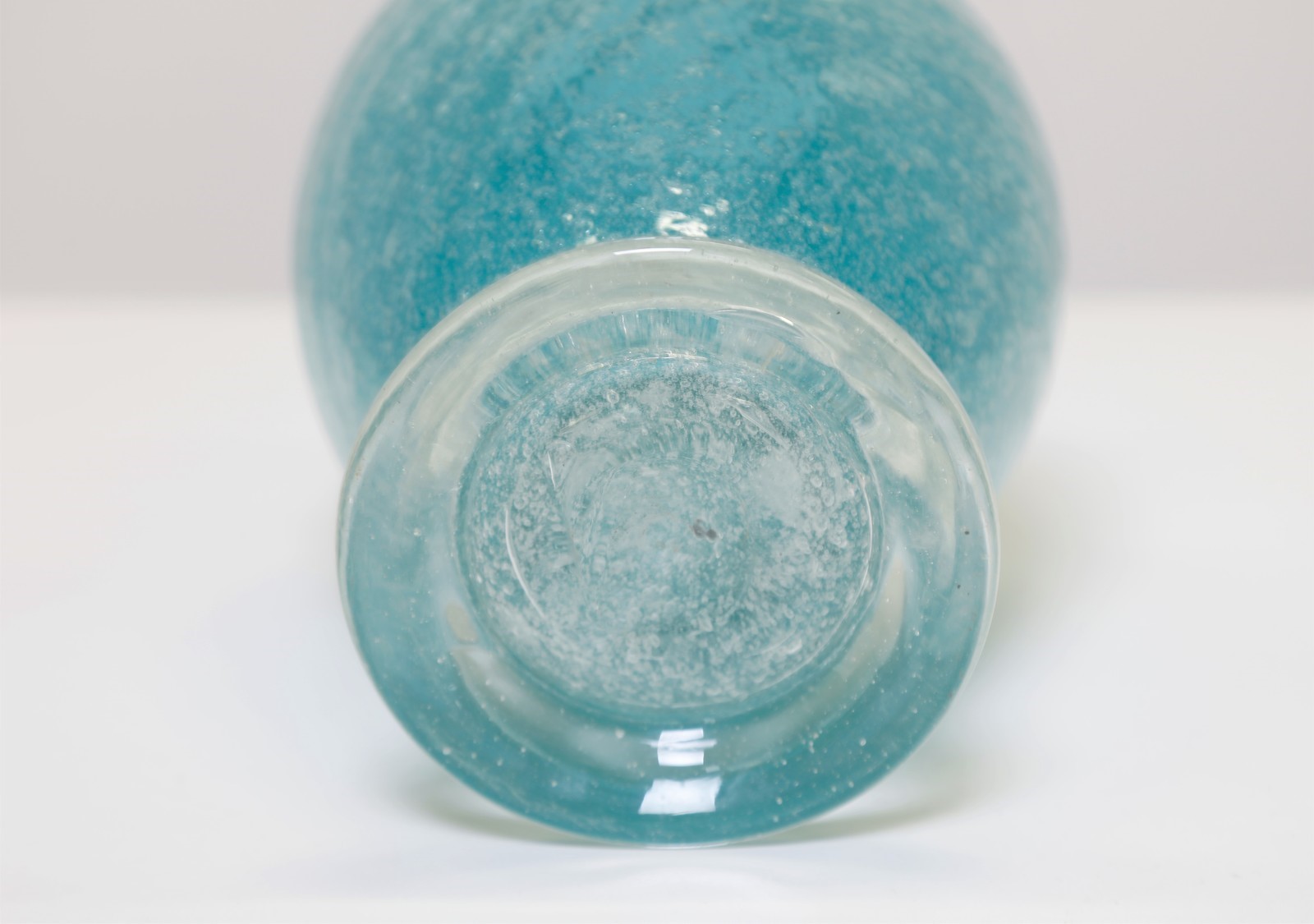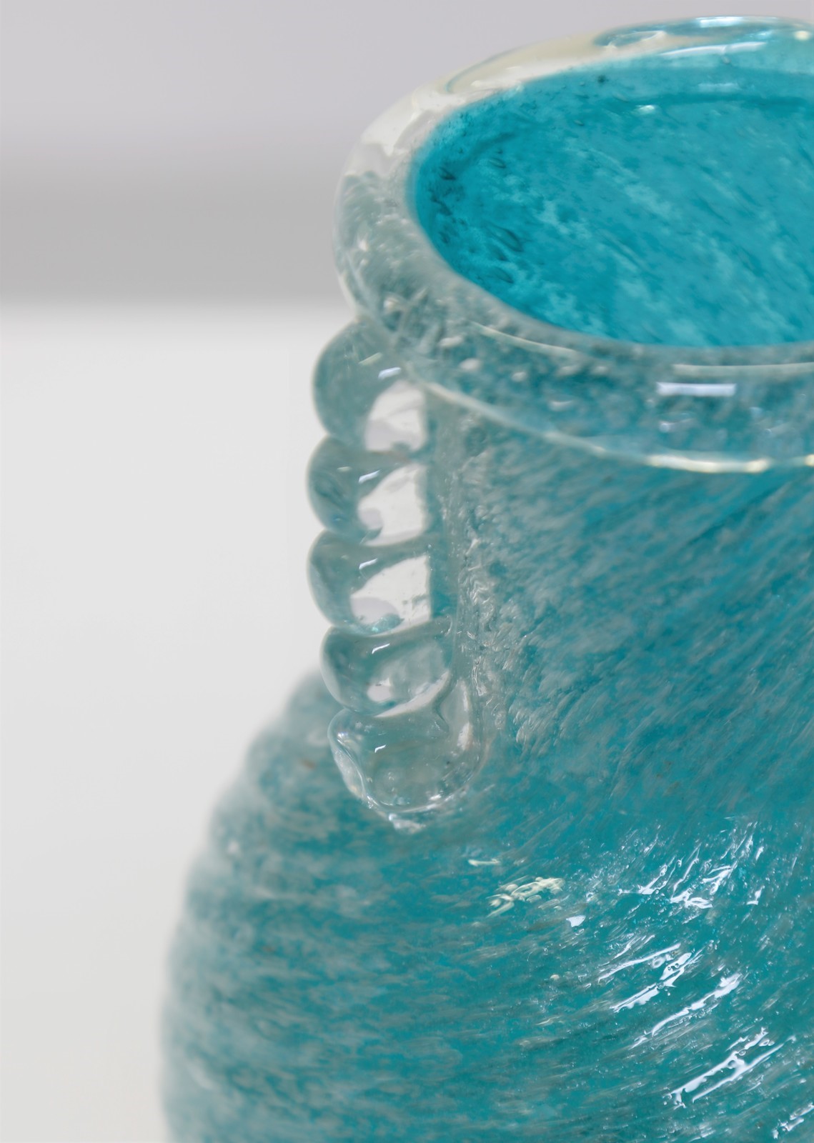 VETRERIE SEGUSO Vase. Murano glass. Cm 14,00 x 27,00 x 14,00. Pulegoso glass vase with morise and crystal base. 40s