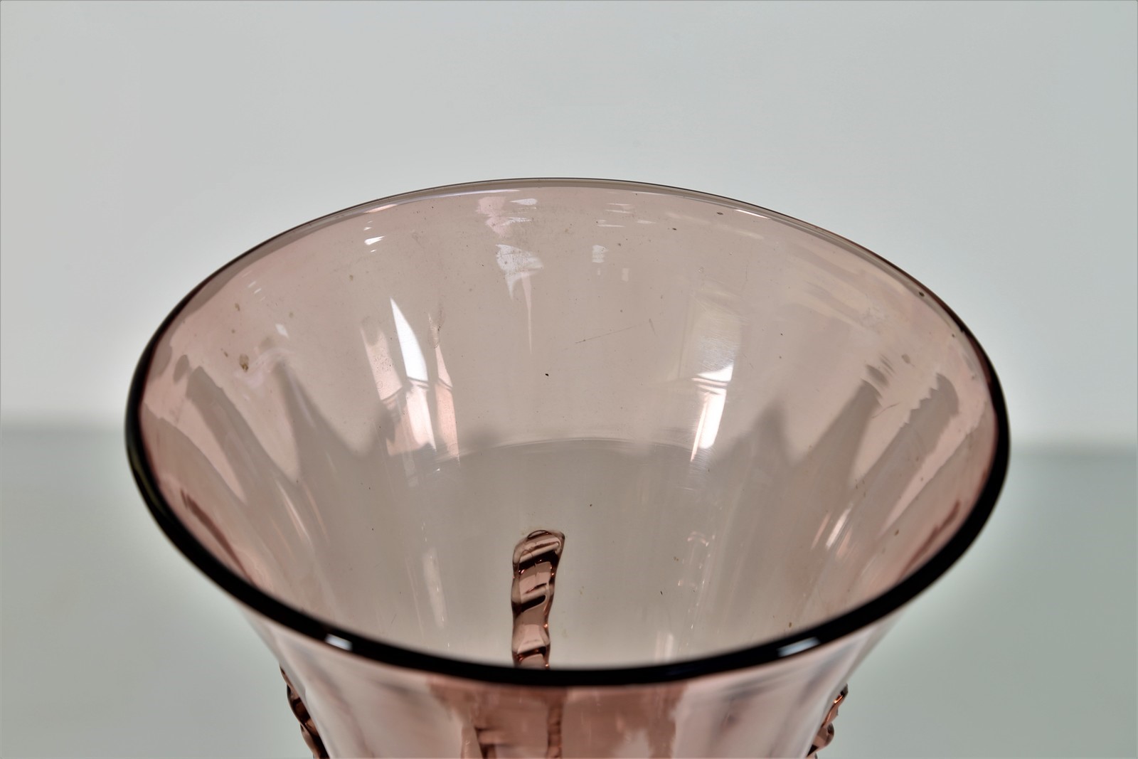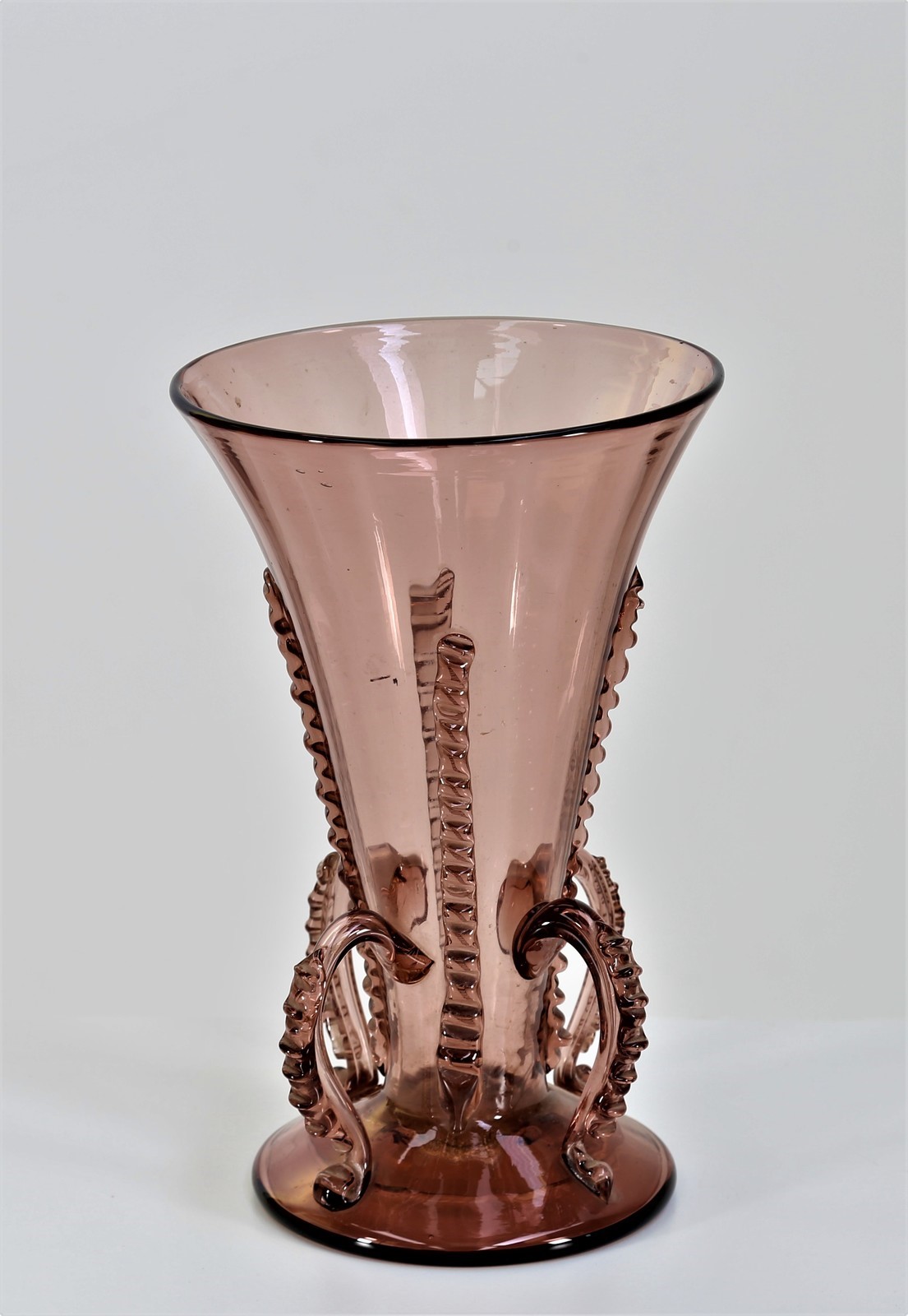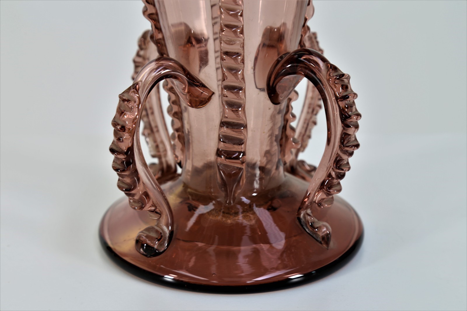 MANIFATTURA MURANO Vaso . Vetro di Murano. Cm 17,00 x 27,00. Vetro ametista con applicazioni, anni 30.