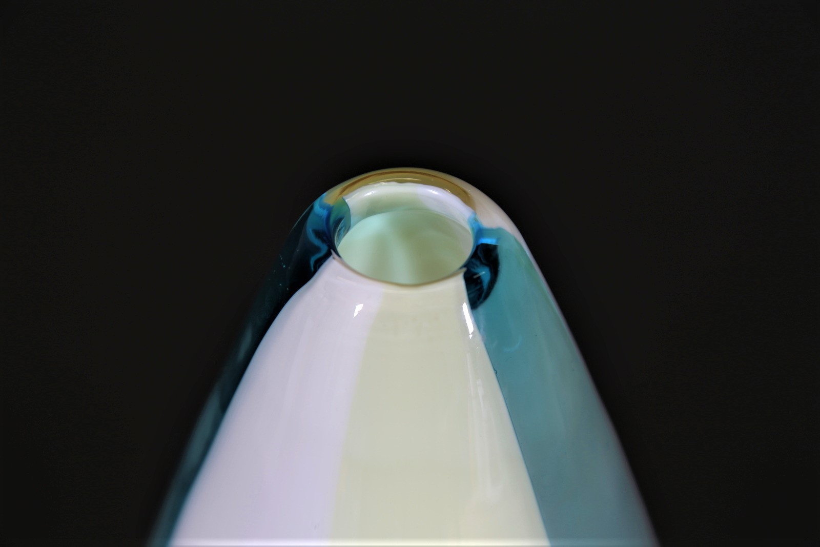 MORETTI CARLO Vaso . Vetro di Murano. Cm 15,00 x 30,00. Vaso in vetro a incalmo a fasce verticali, anni 70