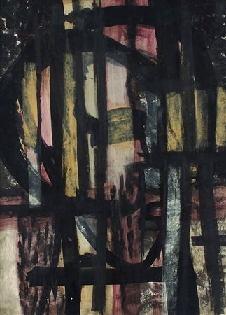 ARTURO CARMASSI Lucca 02/07/1925 Cancello, 1951-52 tempera su carta cm. 70x50, firma in basso al centro, etichetta della Galleria Annunciata (MI) al retro, dichiarazione d'autenticità dell'artista su foto.