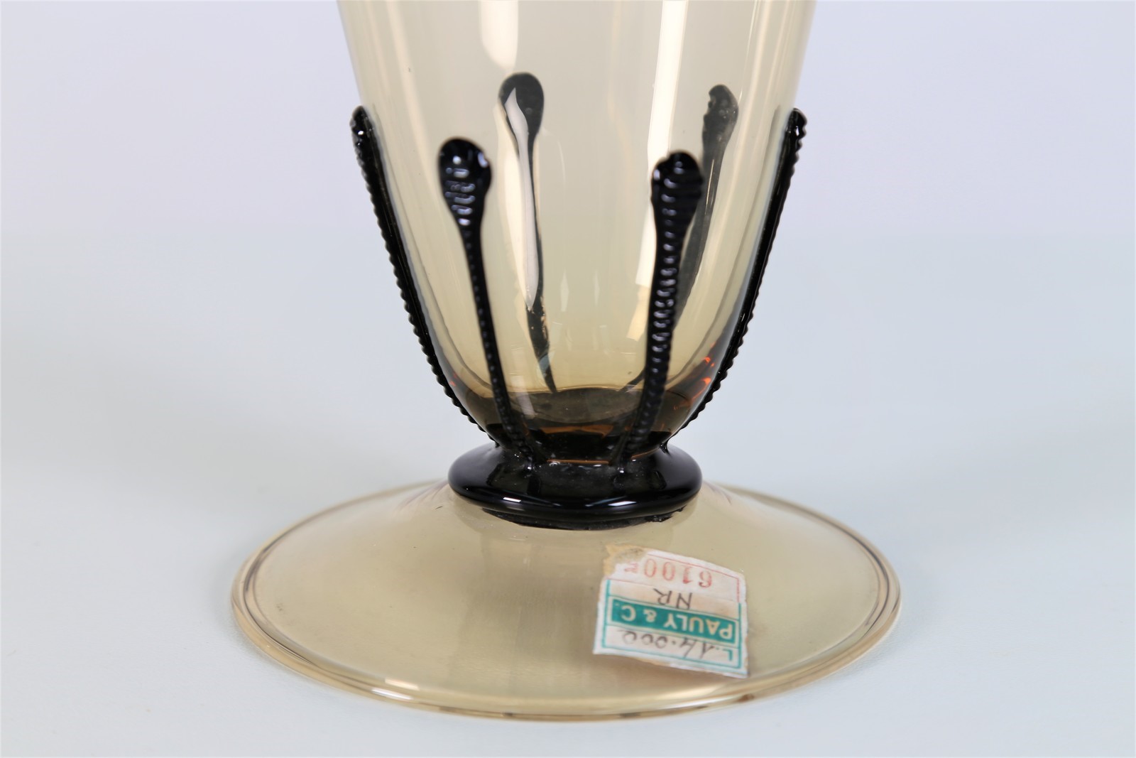 ZECCHIN VITTORIO (1878 - 1947) Attrib. Vaso . Vetro di Murano. Cm 19,40 x 20,23. Vetro ambra con applicazioni, per Pauly & C. - CVM- Compagnia Venezia Murano, anni 40. Etichetta alla base.