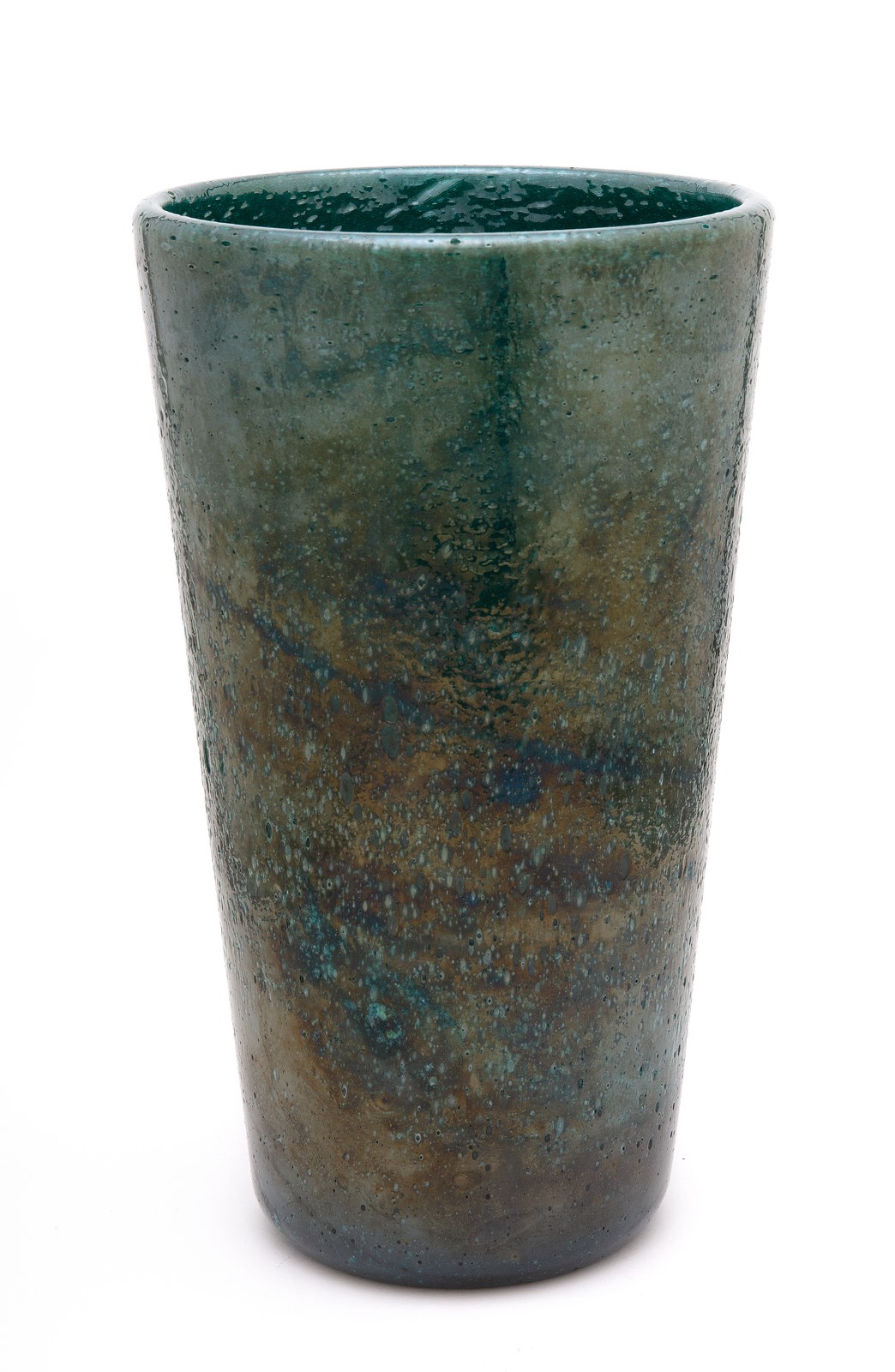 SEGUSO VETRI D'ARTE Vase. Murano glass. Cm 17,50 x 30,00 x 17,50. Green pulegoso glass, highly iridescent, 30s.
