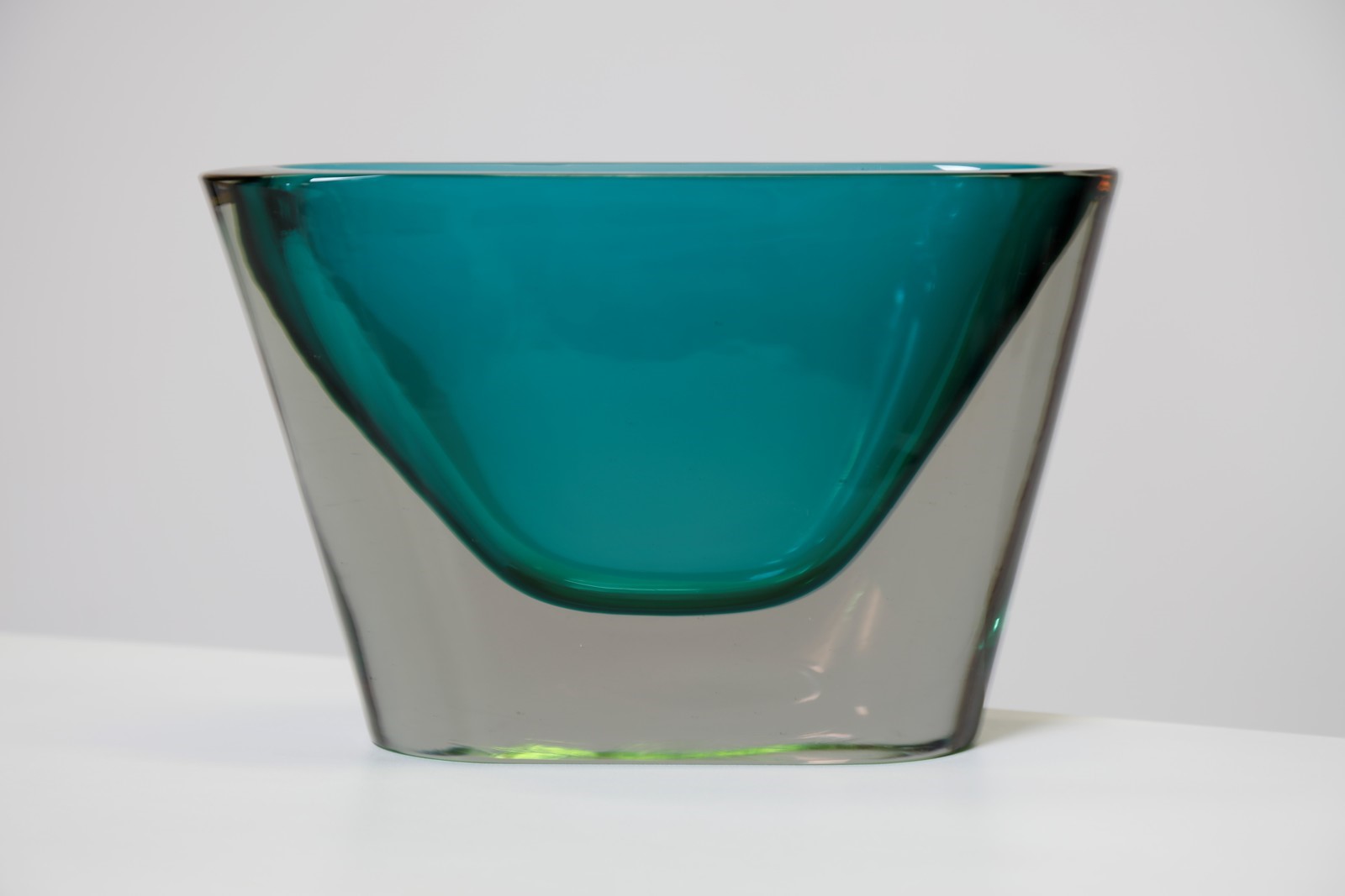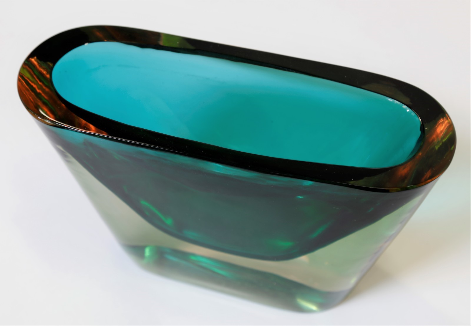 SEGUSO VETRI D'ARTE Vaso. Vetro sommerso. Cm 25,50 x 16,00 x 9,00. Vaso in vetro sommerso color verde, anni 60.