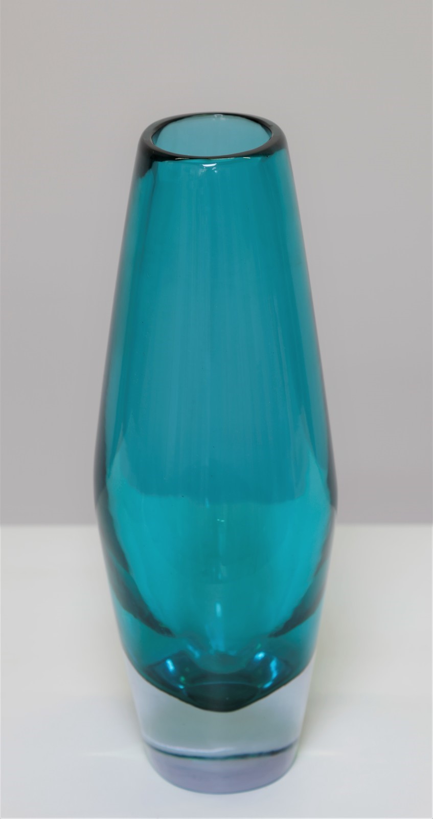 MANIFATTURA MURANO Vaso. Vetro di Murano. Cm 13,00 x 35,00 x 15,00. Vaso in vetro sommerso verde. Anni 60.