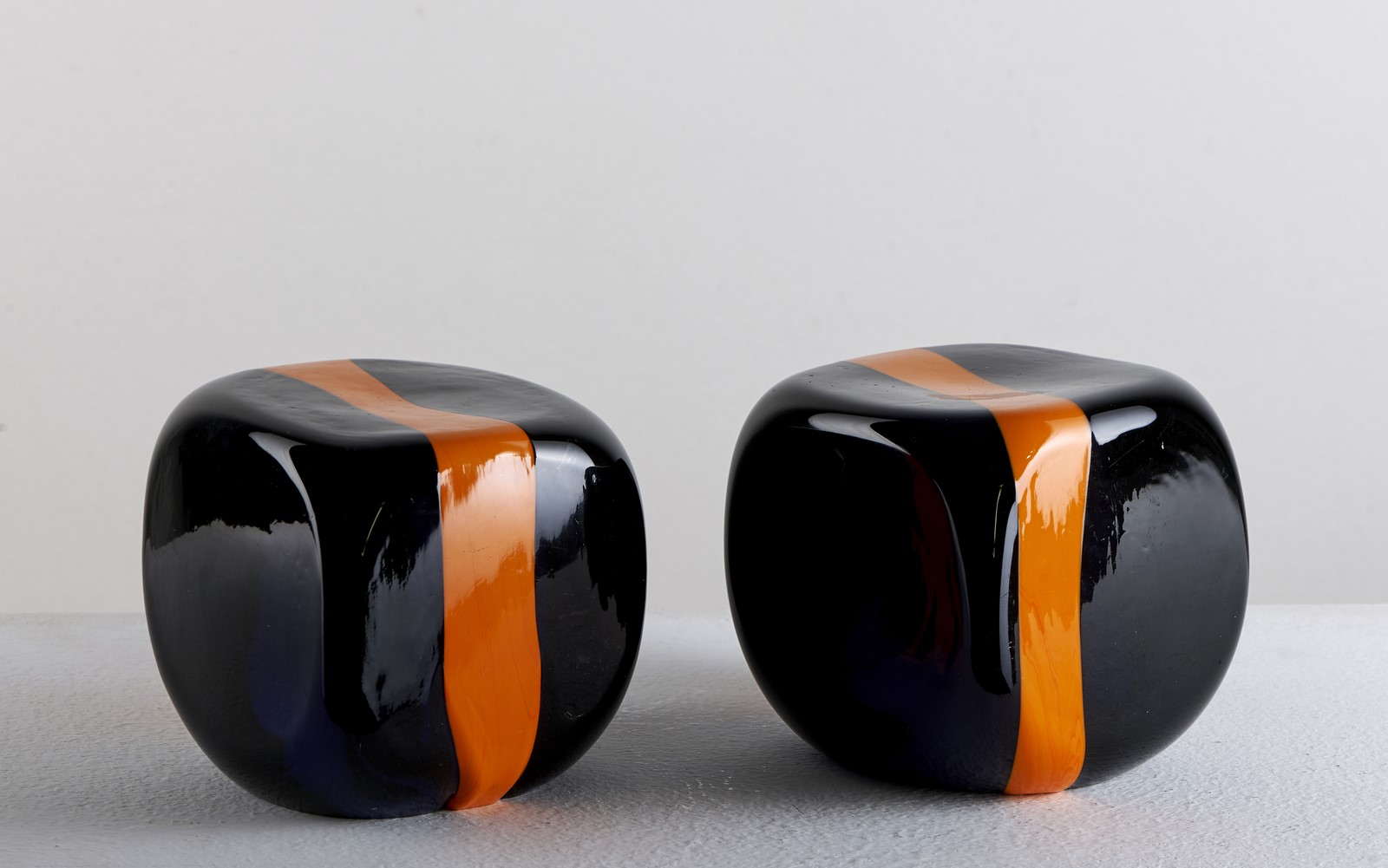 CARDIN PIERRE Pair of dice. Murano glass. Cm 12,00 x 12,00. Murano glass, for Venini, present "Pierre Cardin Venini" pointy signature, 70s.