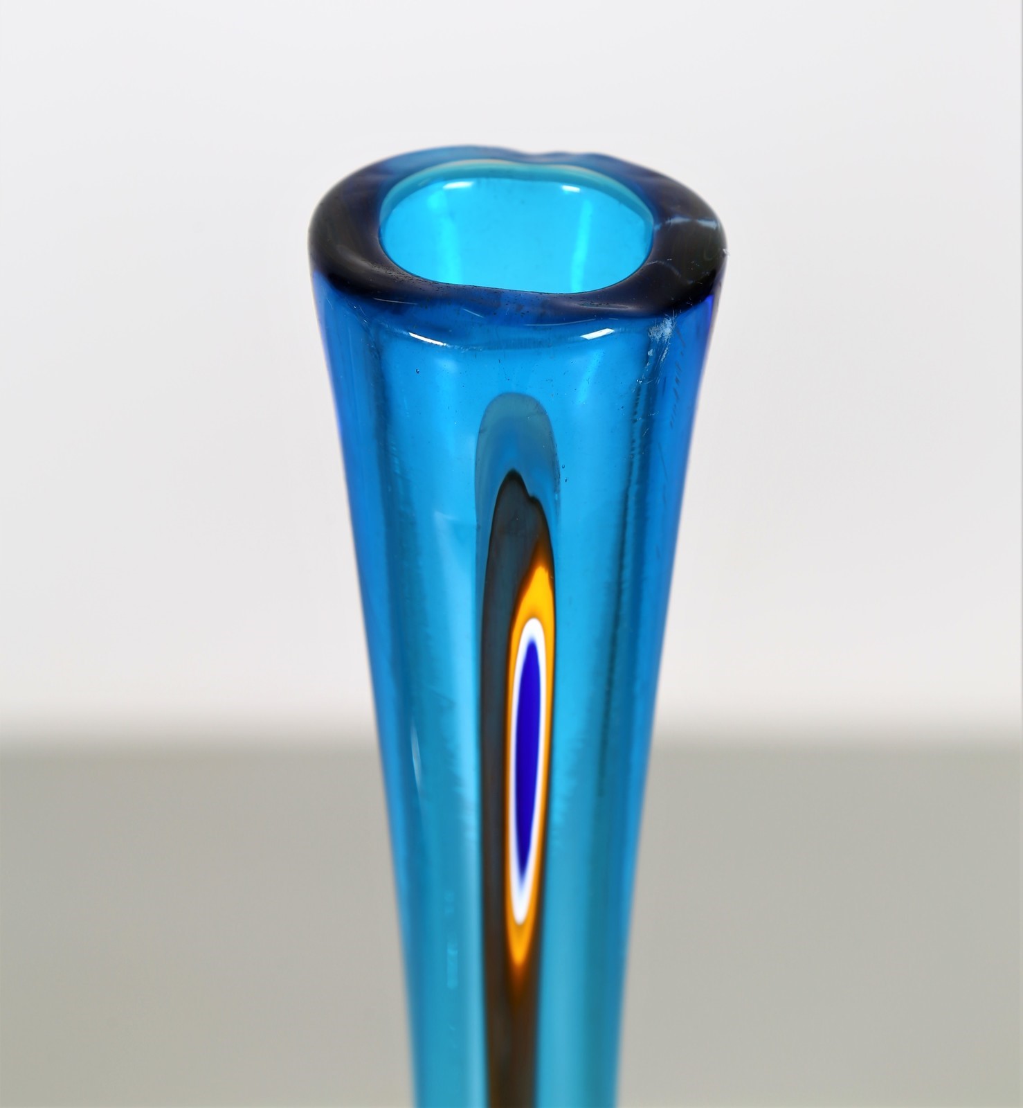 RINALDI ANGELO Bottle. Murano glass. Cm 11,00 x 51,00. Murano glass bottle with murrine, for Fratelli Toso, 1961.
