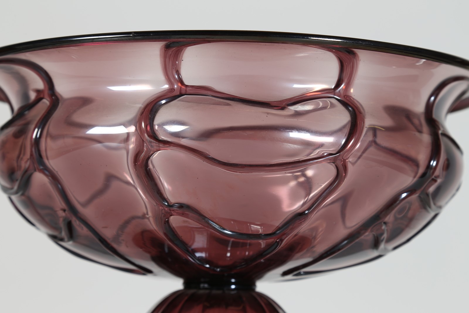 ZECCHIN VITTORIO (1878 - 1947) Grande alzata . Vetro di Murano. Cm 33,00 x 23,50. Vetro ametista con applicazioni, per M.V.M. Cappellin, anni 20.