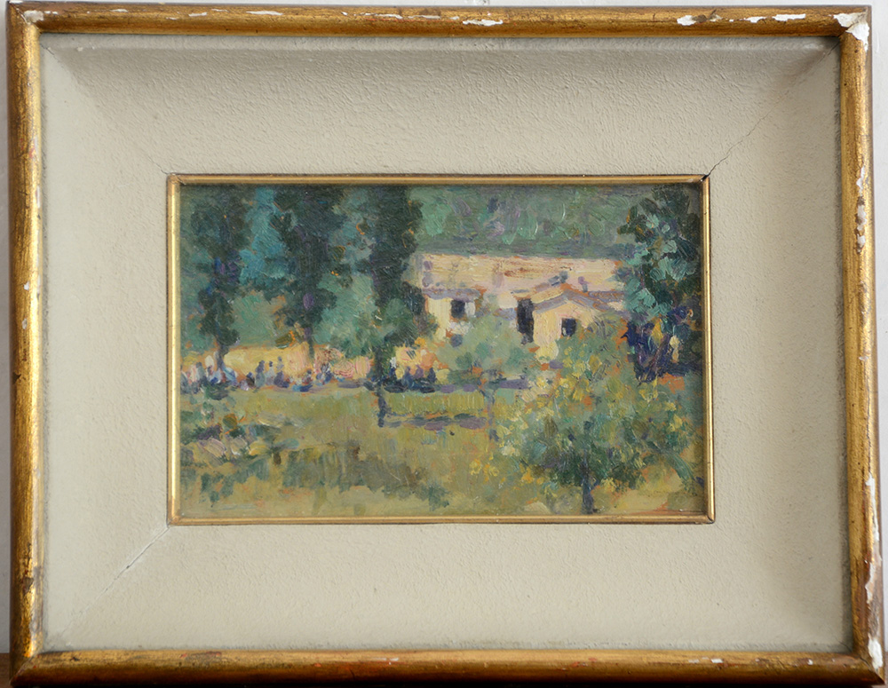 "Bonassola (Pian Pontasco)" 1927, olio su tavola (cm 13x21) Firmato in basso a destra. Al retro: firmato, titolato e datato. In cornice