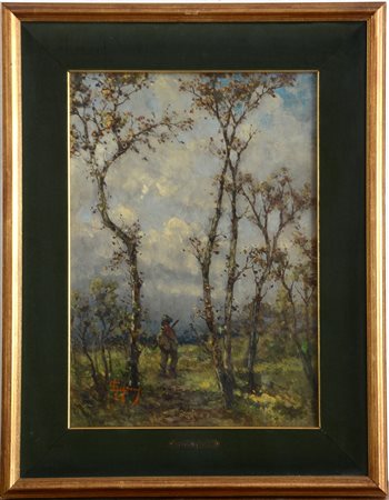 Lorenzo Gignous (Modena 1862 - Porto Ceresio 1958)"Il cacciatore" olio su...