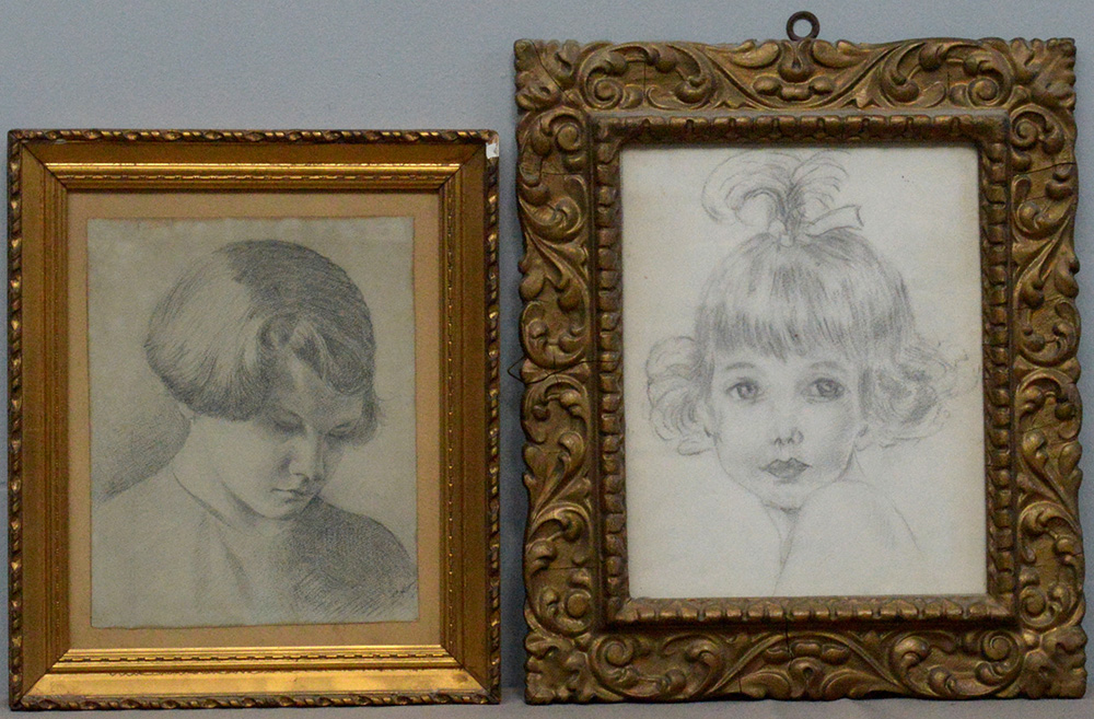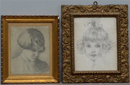 Lotto composto da due disegni raffiguranti volti di fanciulle (cm 30x25) in cornici.