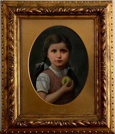 (Attribuito) "Ritratto di fanciulla" olio carta applicata su tavola (cm 55x42.5) (difetti) In cornice