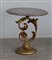 Tavolino tondo da salotto con sostegno in ferro e legno dorato intagliato a...