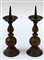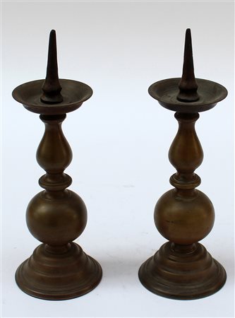 Coppia di antichi candelieri a rocchetto in bronzo (h cm 25)