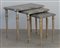 Tre tavolini da salotto in legno laccato con gambe rastremate e piani dipinti...