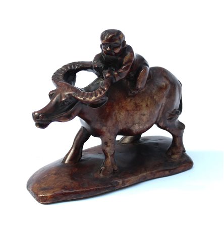 Scultura in pietra dura raffigurante fanciullo su bufalo. Cina, sec. XX (h cm...