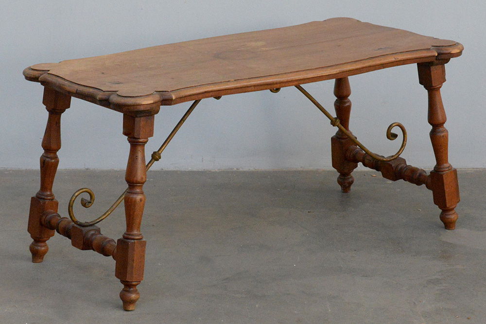 Tavolino da salotto con gambe e raccordi torniti (cm 99x48x48) (difetti)