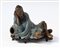 Scultura in biscuit smaltato in azzurro raffigurante il poeta Li Taibo, base in legno. Cina, inizio sec. XX (l cm 20) (difetti)
