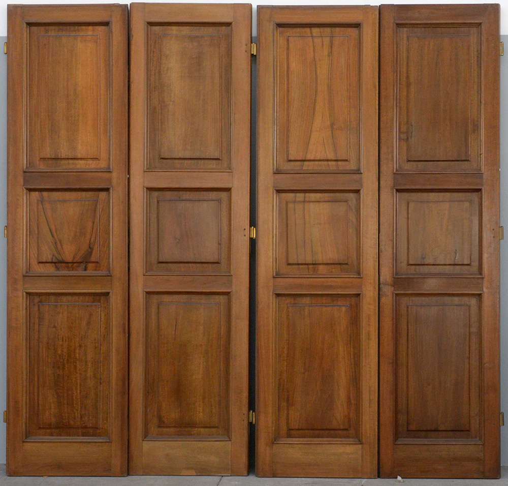 Quattro porte in noce con otto ante pannelate (cm 220x54) (lievi difetti)