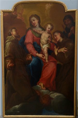 Scuola italiana del secolo XVIII "Vergine con Bambino e Santi" olio su tela...
