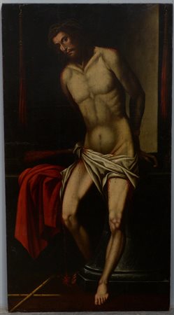 Scuola del secolo XVII "Cristo alla colonna" olio su tela (cm 191x103)...