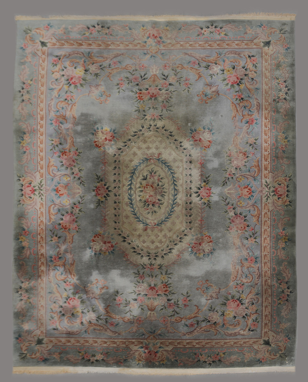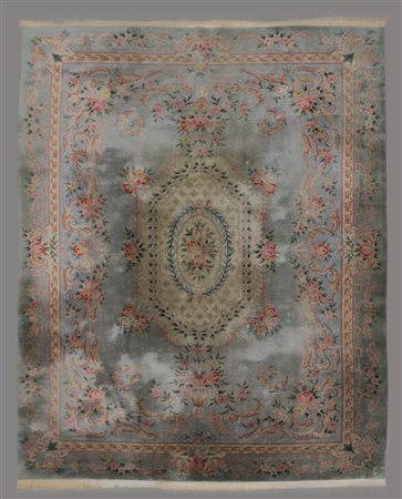 Tappeto Cina, secolo XX. Disegno floreale su fondo azzurro (cm 359x273) (difetti e rapature)