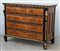 Canterano in noce a quattro cassetti con profili ebanizzati, fronte mosso con specchieture radicate, filettate e decorate da piccoli intarsi, lesene con rilievi dorati (cm 142x110x60) Lombardia secolo XVIII (difetti)
